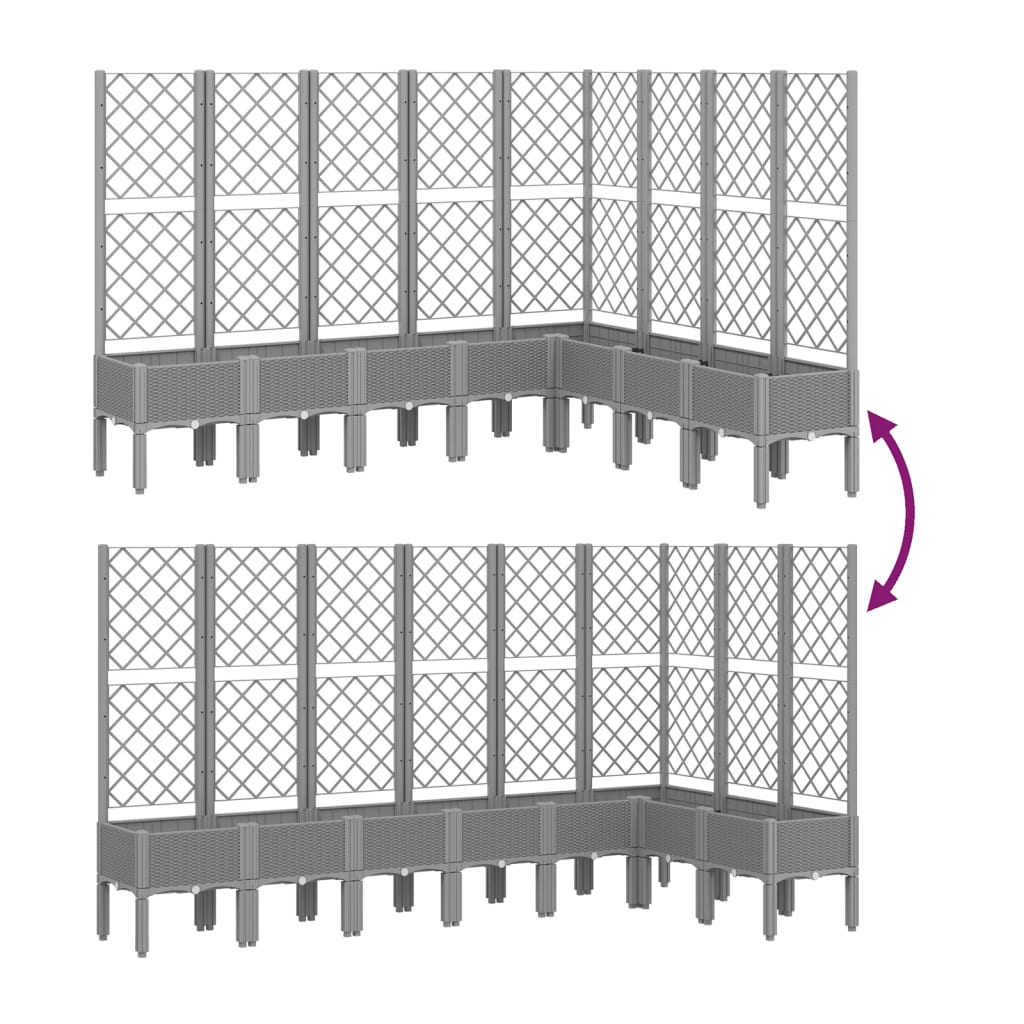 Jardinière bac lit surélevé plantes fleurs terrasse jardin avec treillis clair 200 x 160 x 142 cm PP gris 02_0038353