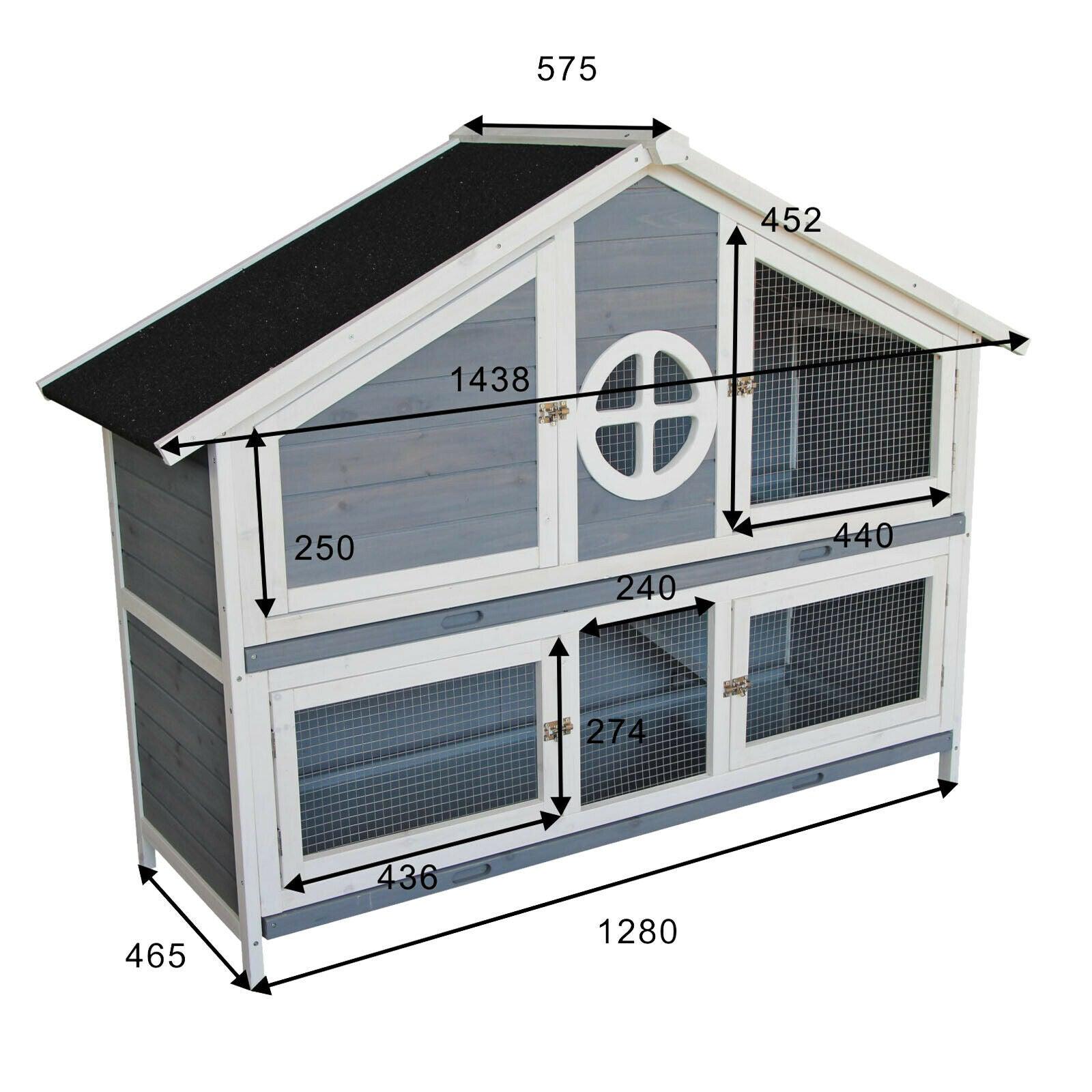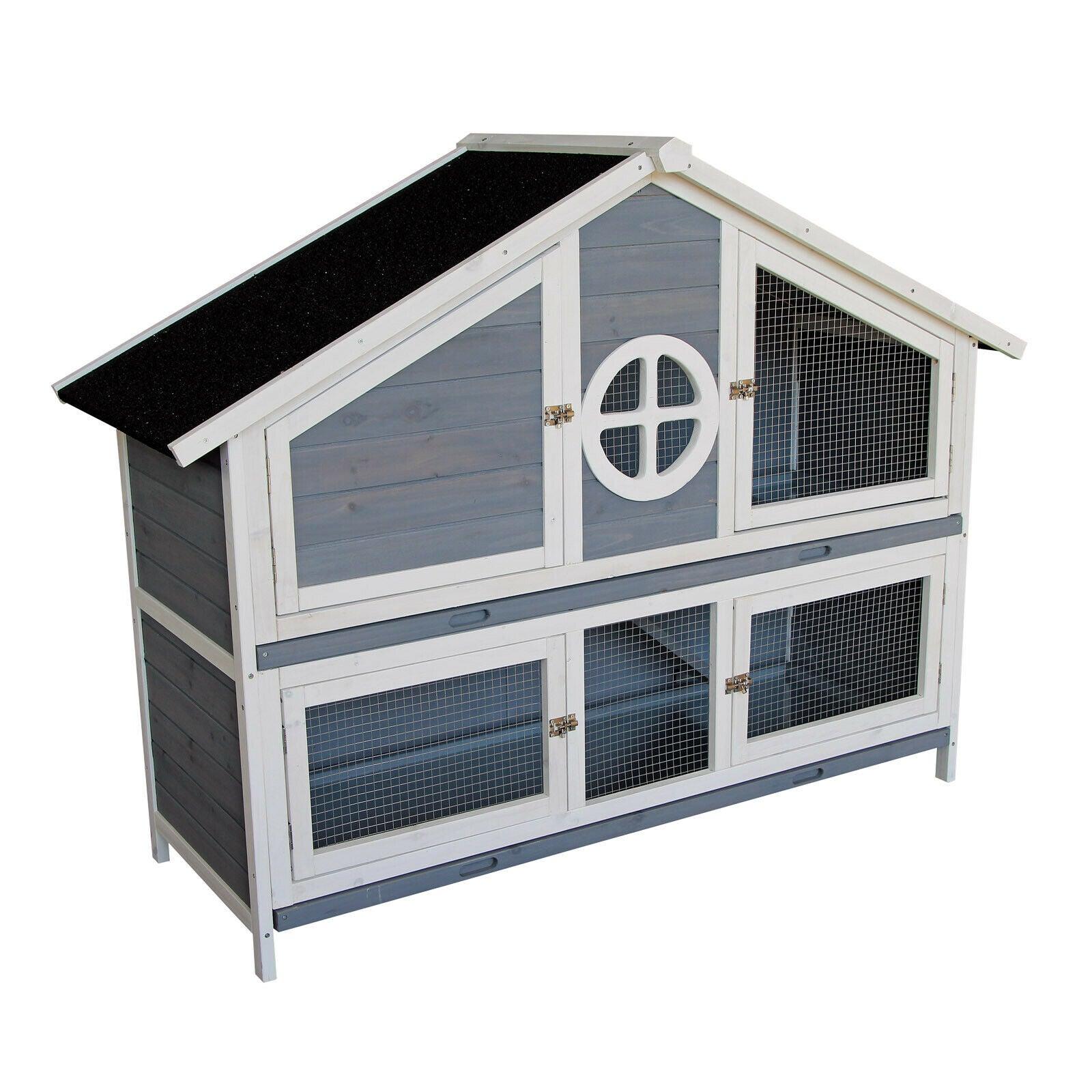 Clapier lapin villa cage rongeurs enclos 133 cm cochon d’inde abri petits animaux luxe gris 16_0002234
