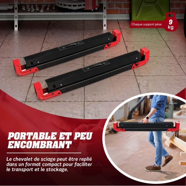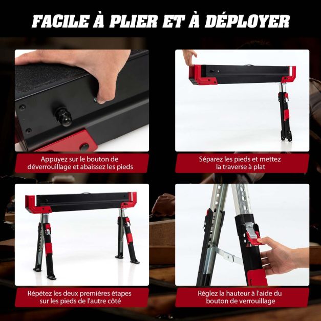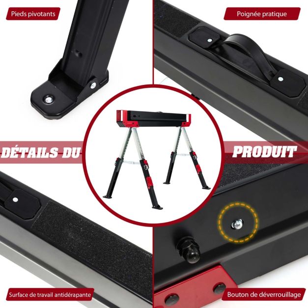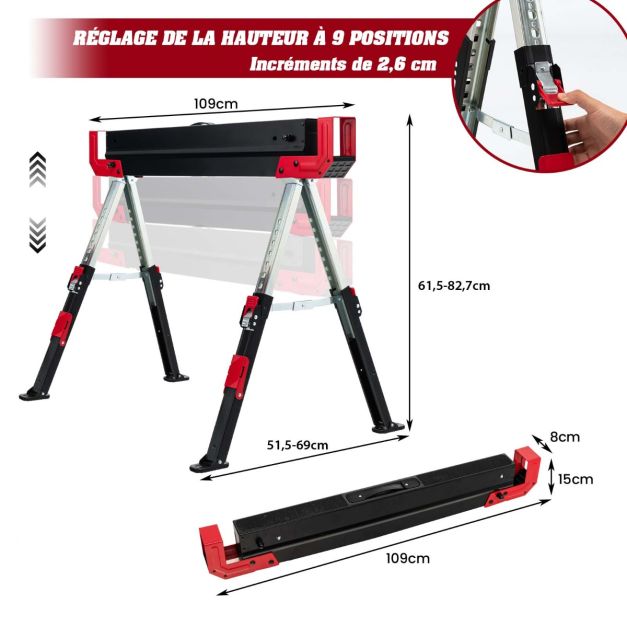 Lot de 2 tréteaux métalliques pieds antidérapants hauteur a justable 61,5 à 82,7 cm noir et rouge 20_0008788