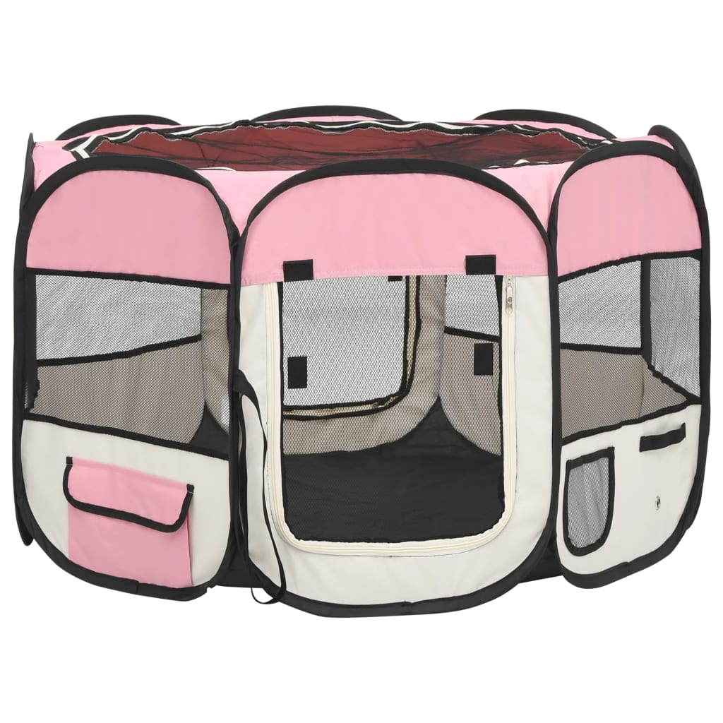 Parc pour chiens pliable avec sac de transport rose 90 x 90 x 58 cm 02_0001735