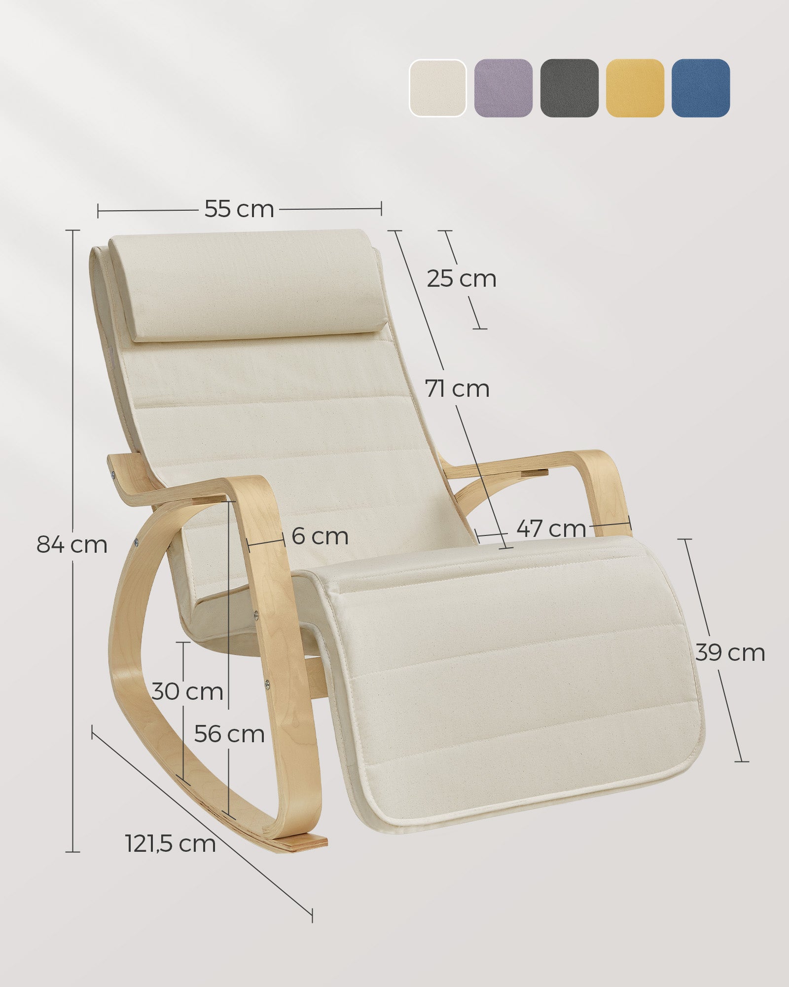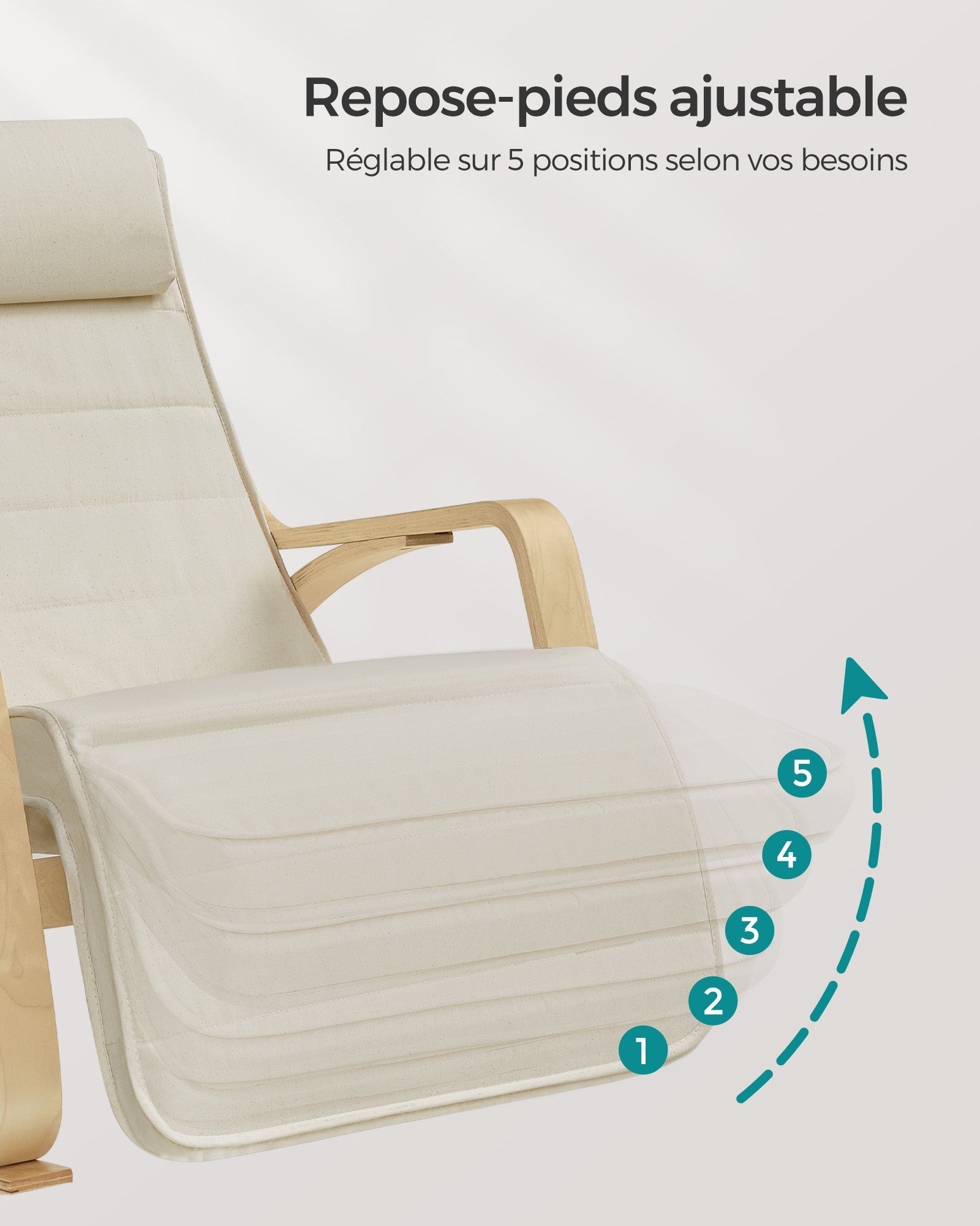 Fauteuil à bascule rocking chair doté d'un repose-pieds angle réglable à 5° charge maximale 150 kg beige 12_0005850