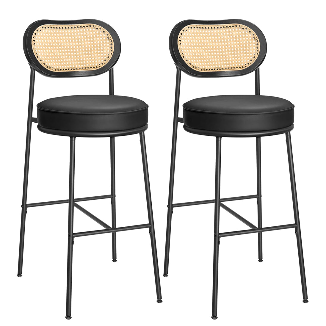 Lot de 2 tabourets de bar chaises de bar hauteur comptoir tabourets haut de cuisine avec dossier incurvé en rotin PE 482 x 457 x 92 cm noir 12_0006258
