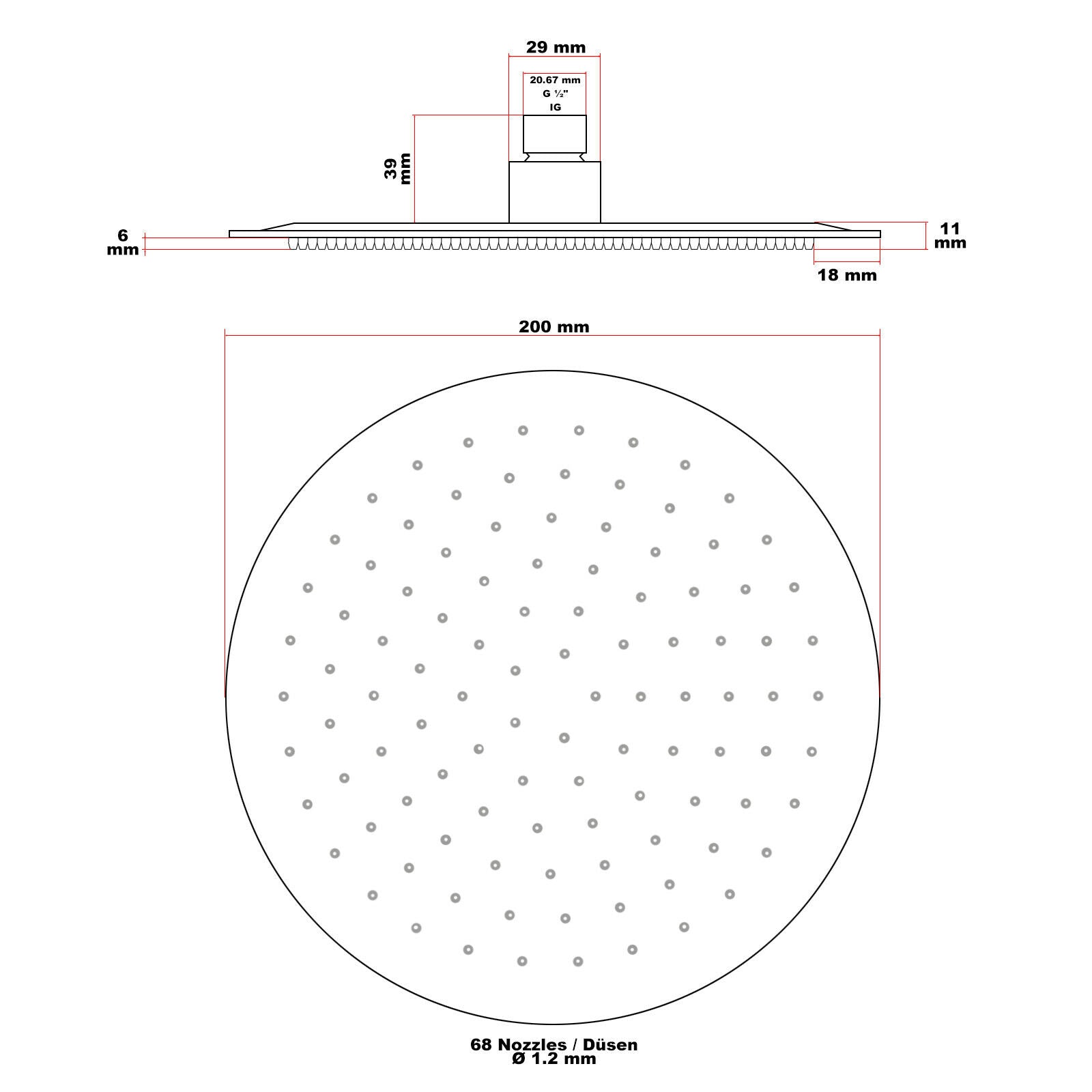 Pommeau de douche rond pomme jet de pluie tête de douche 20 cm acier inoxydable 16_0000628