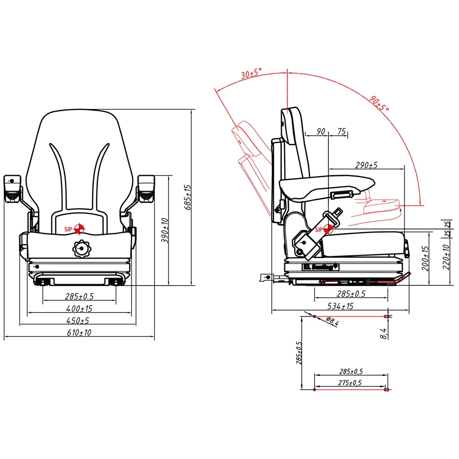 Accessoire universel – siège idéal pour les tracteurs, les tondeuses, les chariots élévateurs, etc. qui sont équipés d’une plaque de montage de 27 x 28.5 cm