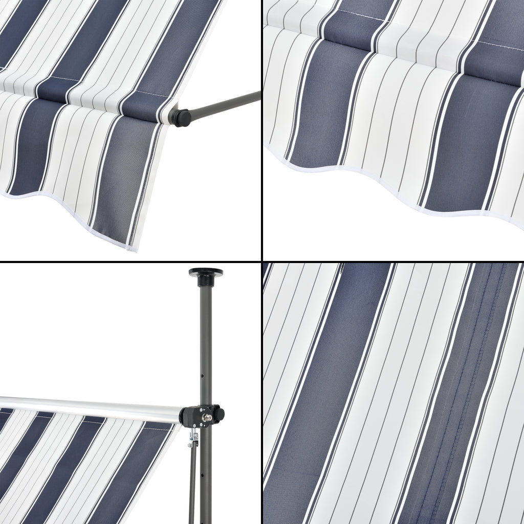 Store banne téléscopique acier polyester 200 x 120 x 200-300 cm bleu foncé blanc 03_0008320