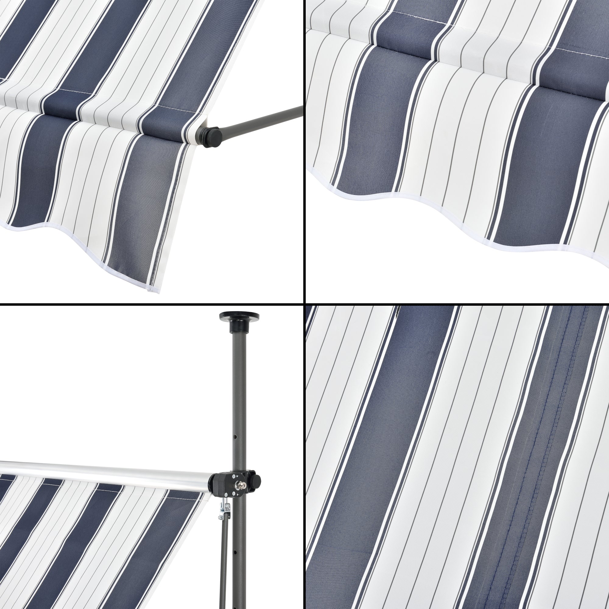 Store banne téléscopique acier polyester 350 x 120 x 200-300 cm bleu foncé blanc 03_0008338
