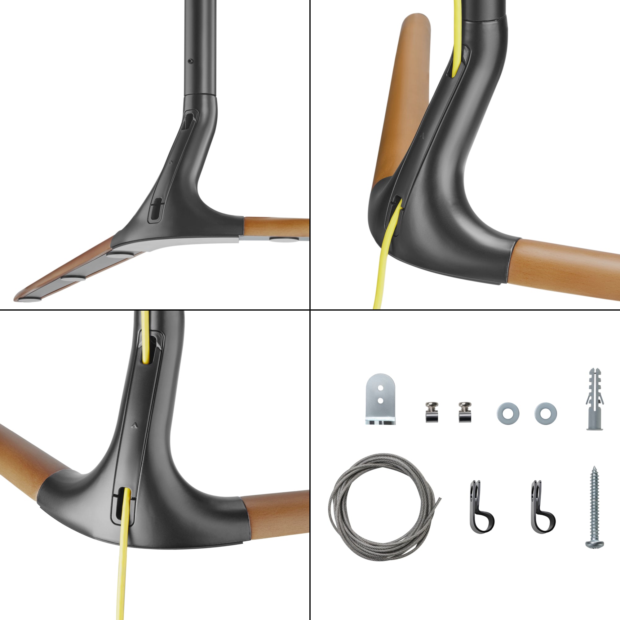 Notre support pour téléviseurs offre à la fois fonctionnalité et esthétique. Conçu pour les écrans jusqu'à 65 pouces, il s'adapte harmonieusement à tout environnement. Avec une plage de pivotement flexible allant jusqu'à 140°, l'angle de vision peut être ajusté individuellement. La compatibilité VESA va de 200 x 200 à 400 x 400 mm, assurant une fixation sécurisée pour la plupart des écrans, avec une capacité de charge maximale de 40 kg. Un guide-câbles intégré garantit l'ordre et facilite la gestion des câbles. De plus, un fil de sécurité en option permet une fixation murale stable, réduisant ainsi le risque de basculement, ce qui le rend adapté aux foyers avec enfants ou animaux domestiques.
