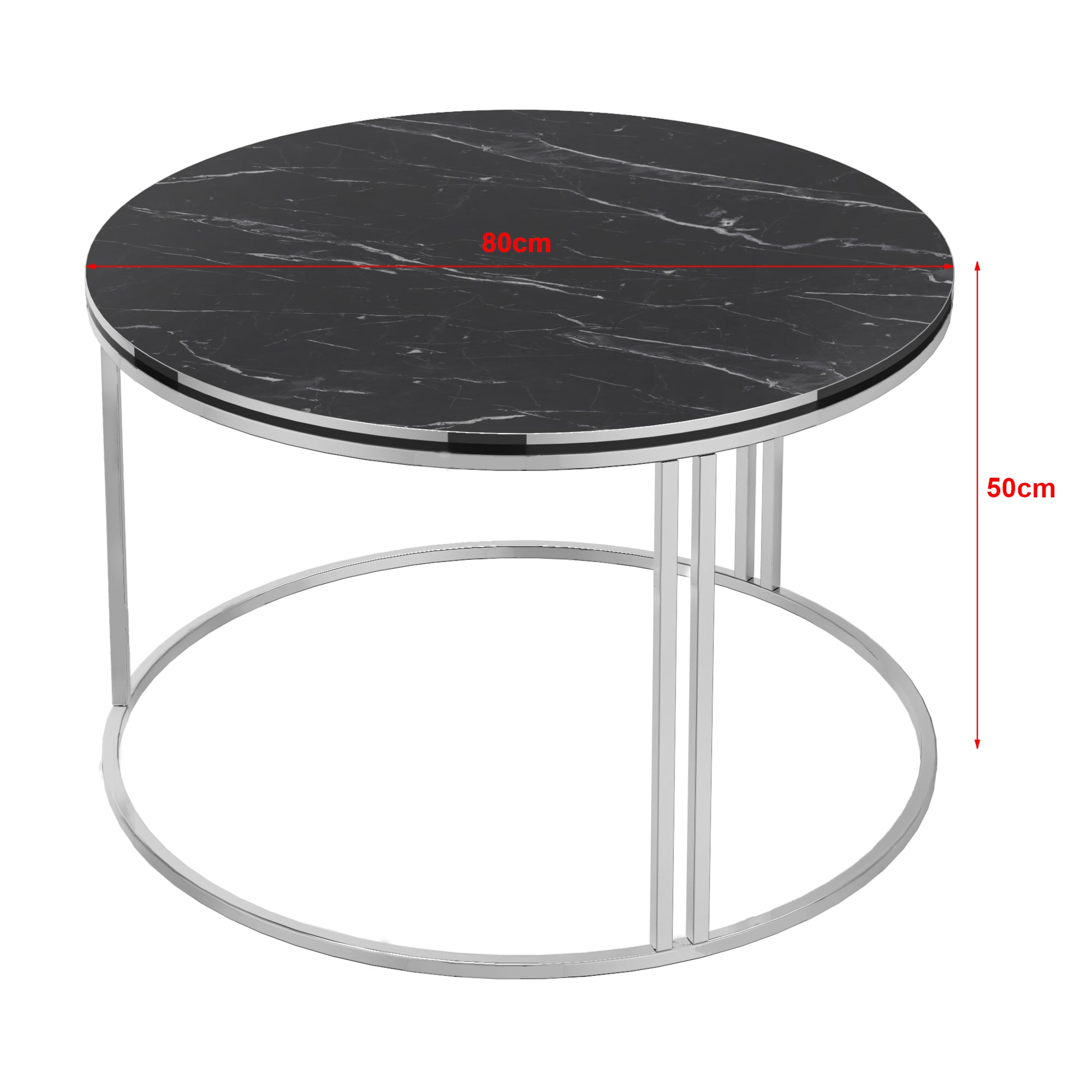Table basse ronde 50 x 80 cm marbre noir argent 03_0008425