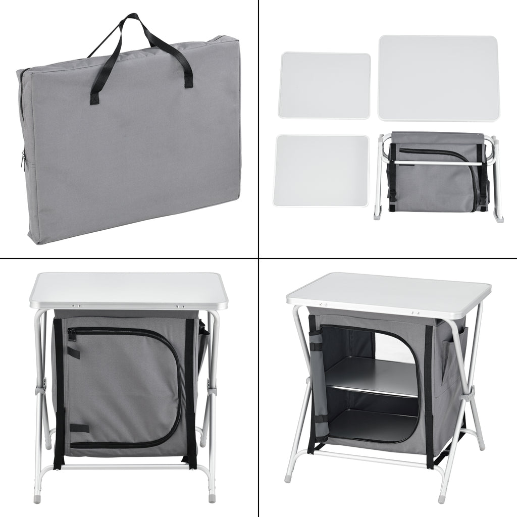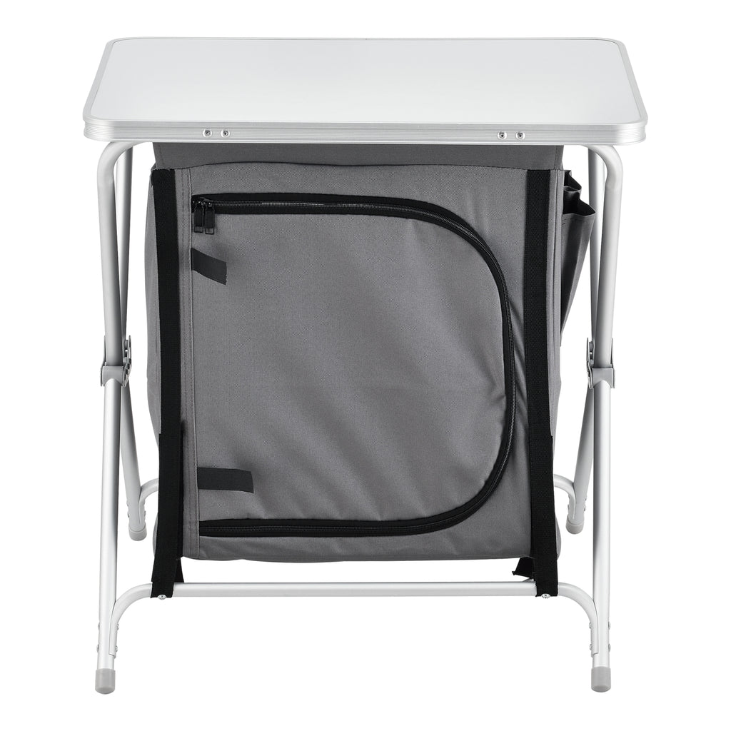 Ce meuble de cuisine d'extérieur permet un usage polyvalent et se range facilement grâce au sac de transport et à son caractère pliable. Le plan de travail vous offre une surface pratique pour les préparatifs. Quant à l'intérieur, les compartiments fermés permettent de ranger vos outils, assiettes et verres.
