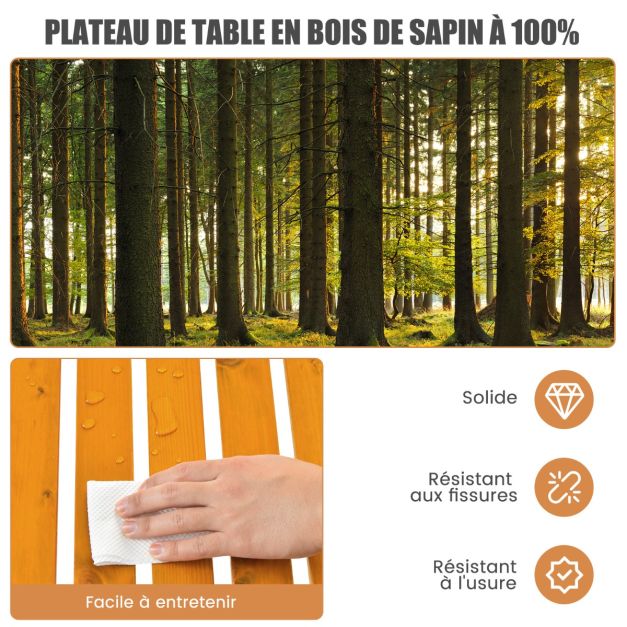 Le plateau 100 % bois de sapin est solide, résistant aux fissures et à l'usure