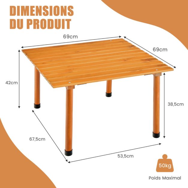 Dimensions hors tout : 69 x 69 x 42 cm (L x l x H)