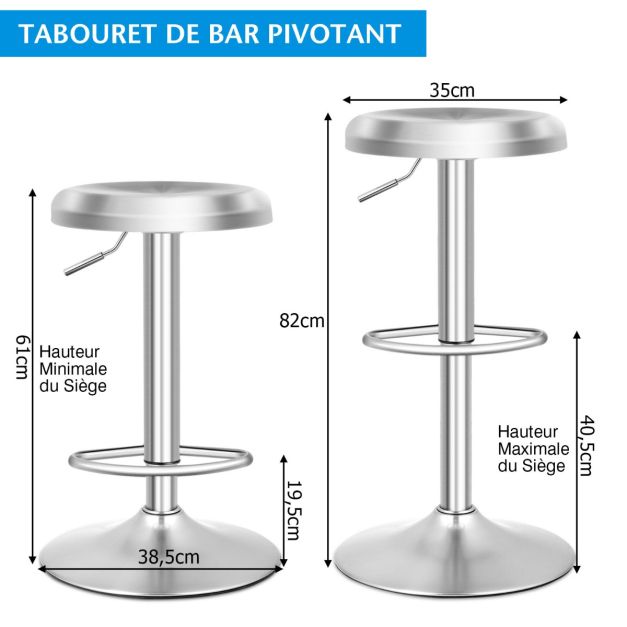 Le tabouret de bar pivotant à 360 degrés vous permet de tourner librement
