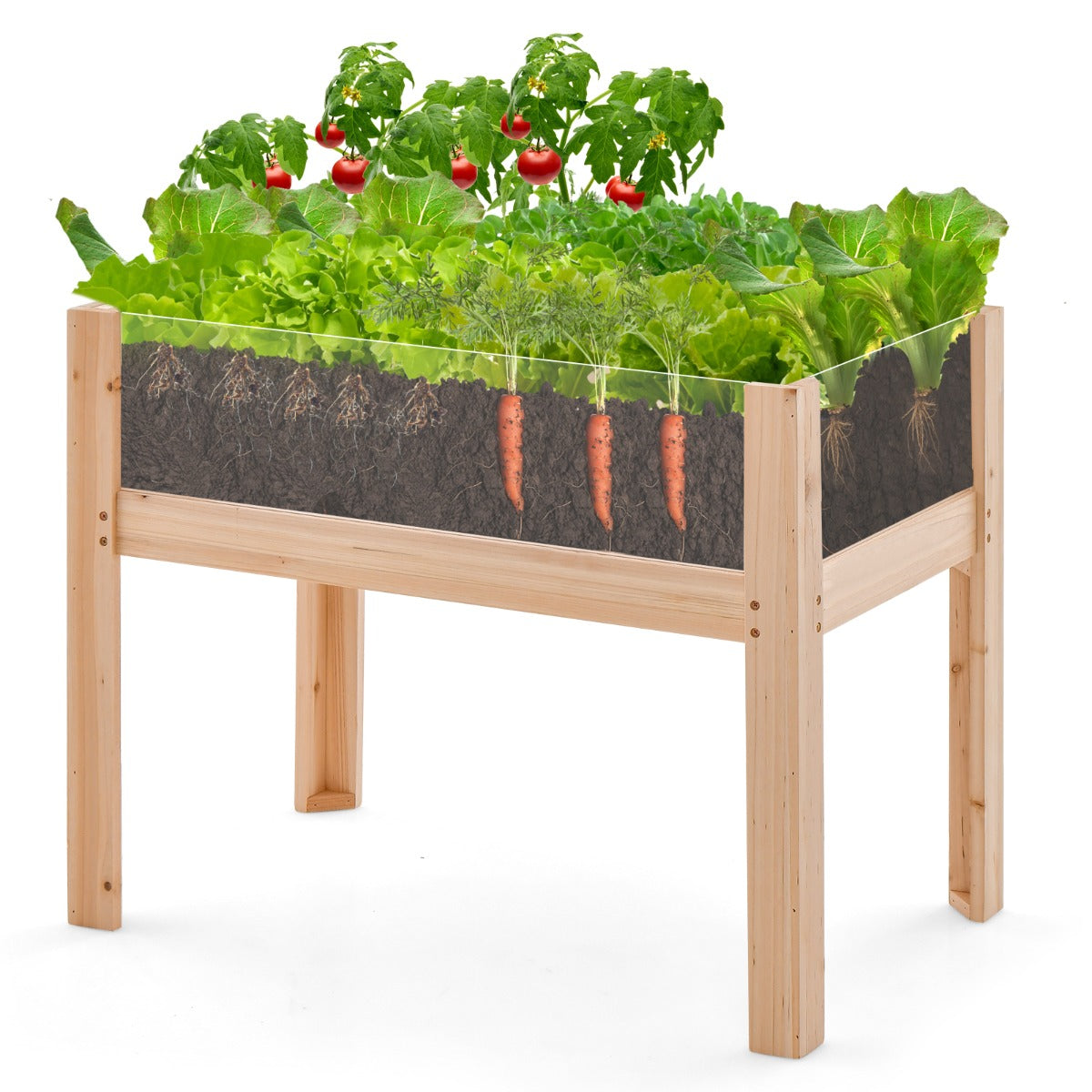 Jardinière surélevée en bois trous de drainage panneaux acryliques transparent légumes herbes fleurs capacité de 50 litres naturel 20_0008641