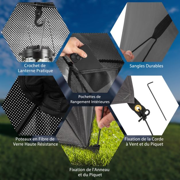 Avec une structure à ouverture instantanée pratique, facile et rapide à monter ou à démonter