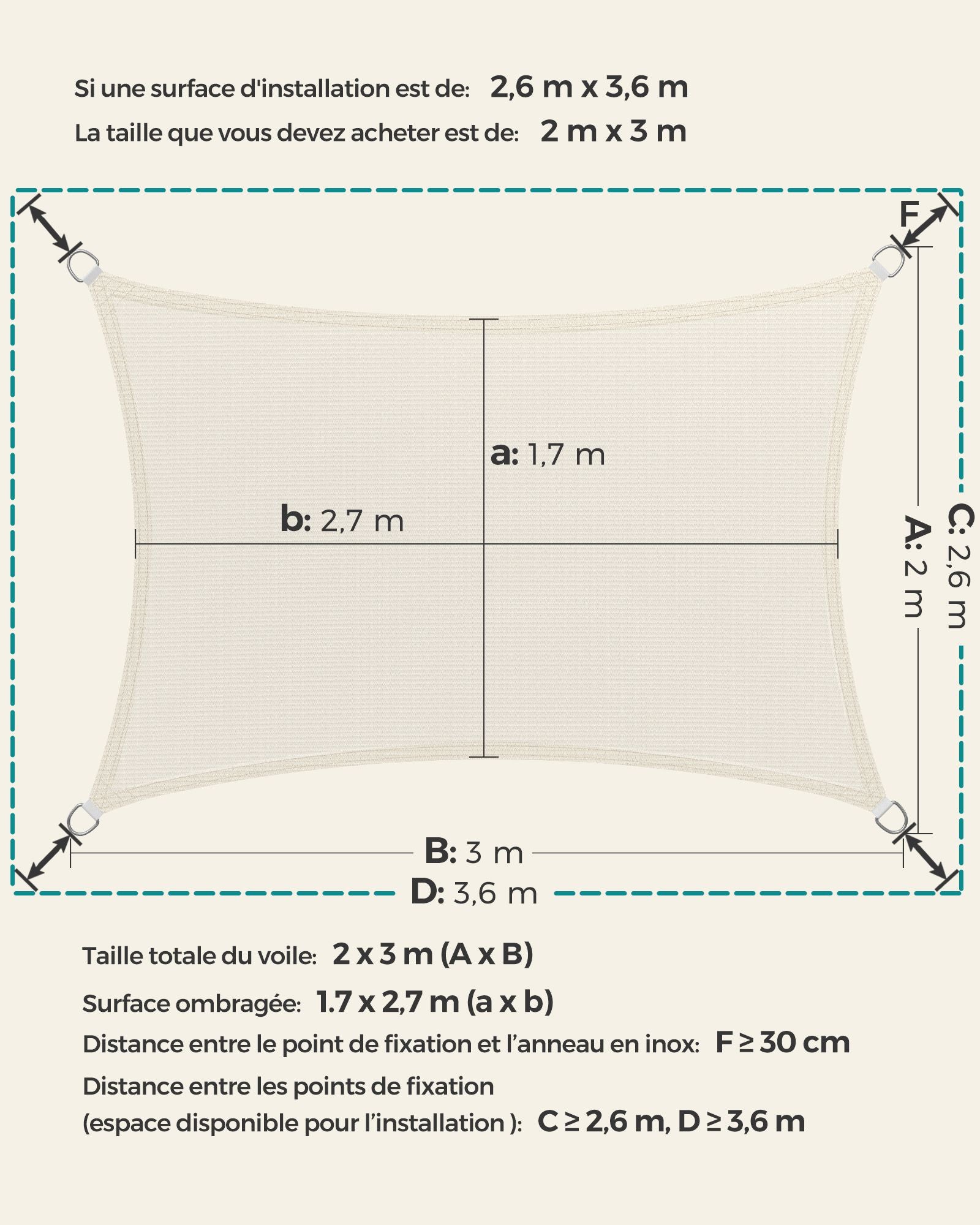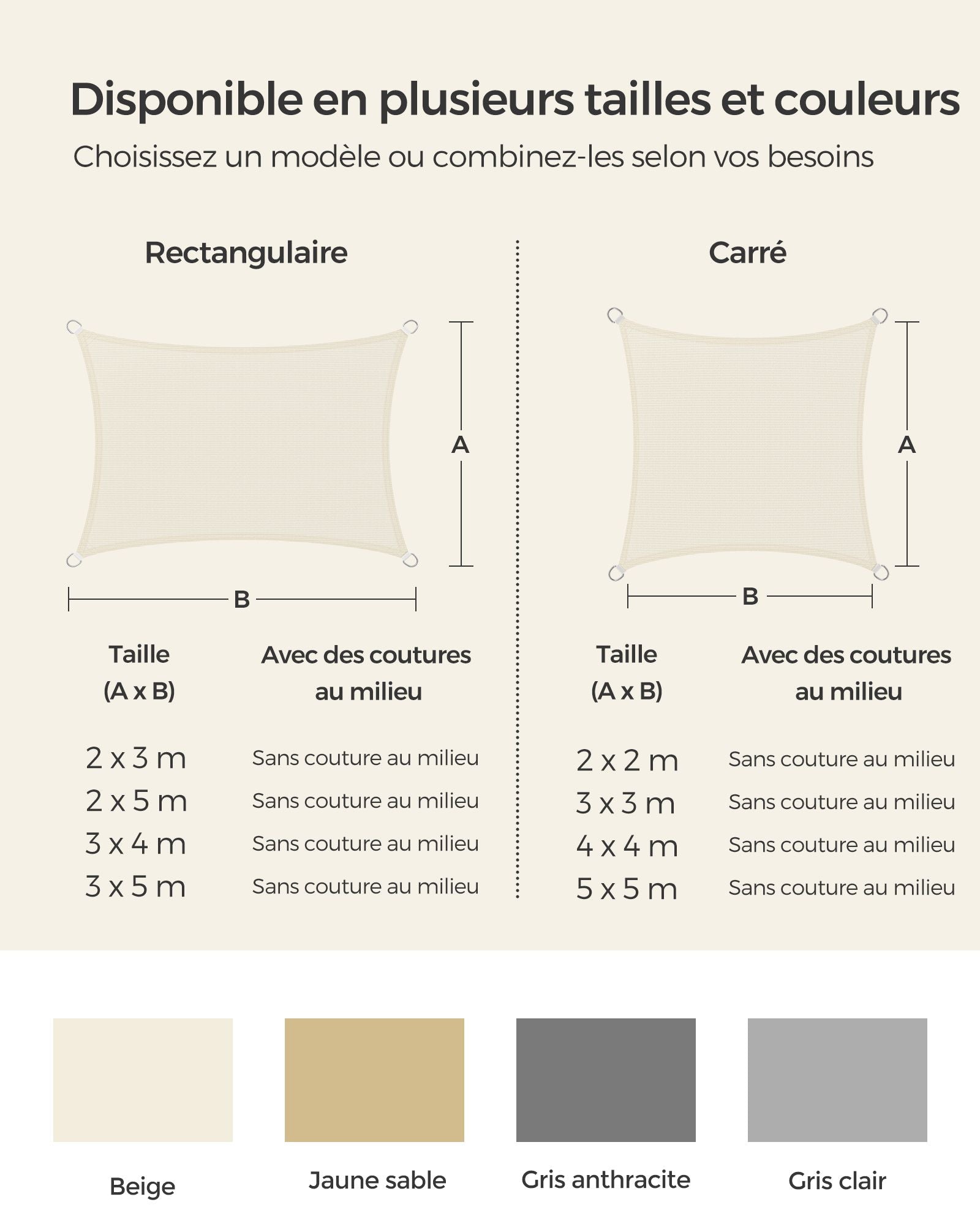 Voile d'ombrage 2 x 3 m toile tendu en hdpe protection salaire extérieure respirant pour balcon terrasse jardin anthracite beige 12_0003749