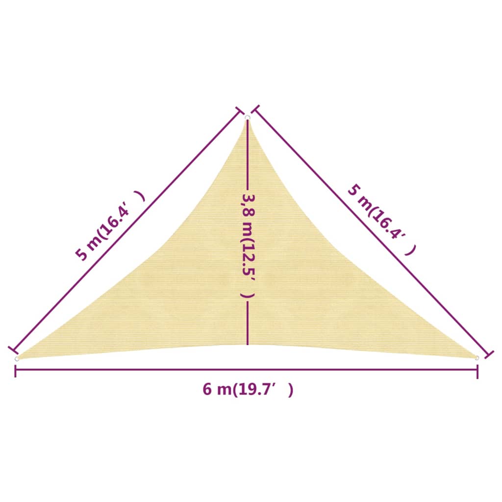 Voile d'ombrage 160 g/m² beige 5 x 5 x 6 m pehd 02_0008986