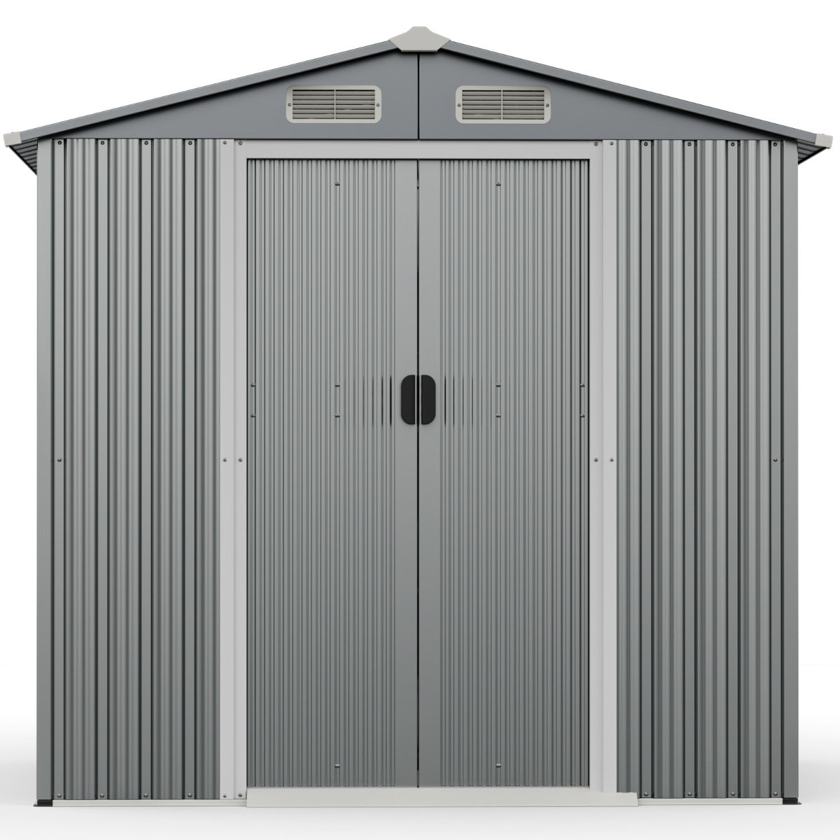 Abri de jardin 196 x 142 x 186 cm polyvalent pour rangement sécurisé et accès facile, design moderne en métal galvanisé gris clair 20_0010001