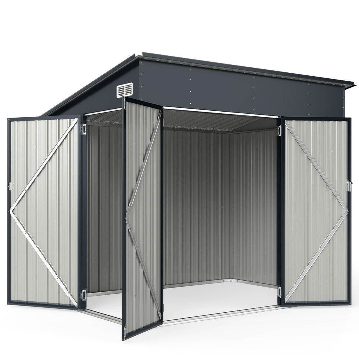 Abri de stockage extérieur triple porte 235 x 174 x 197 cm sécurisé design moderne en acier galvanisé gris foncé 20_0017471