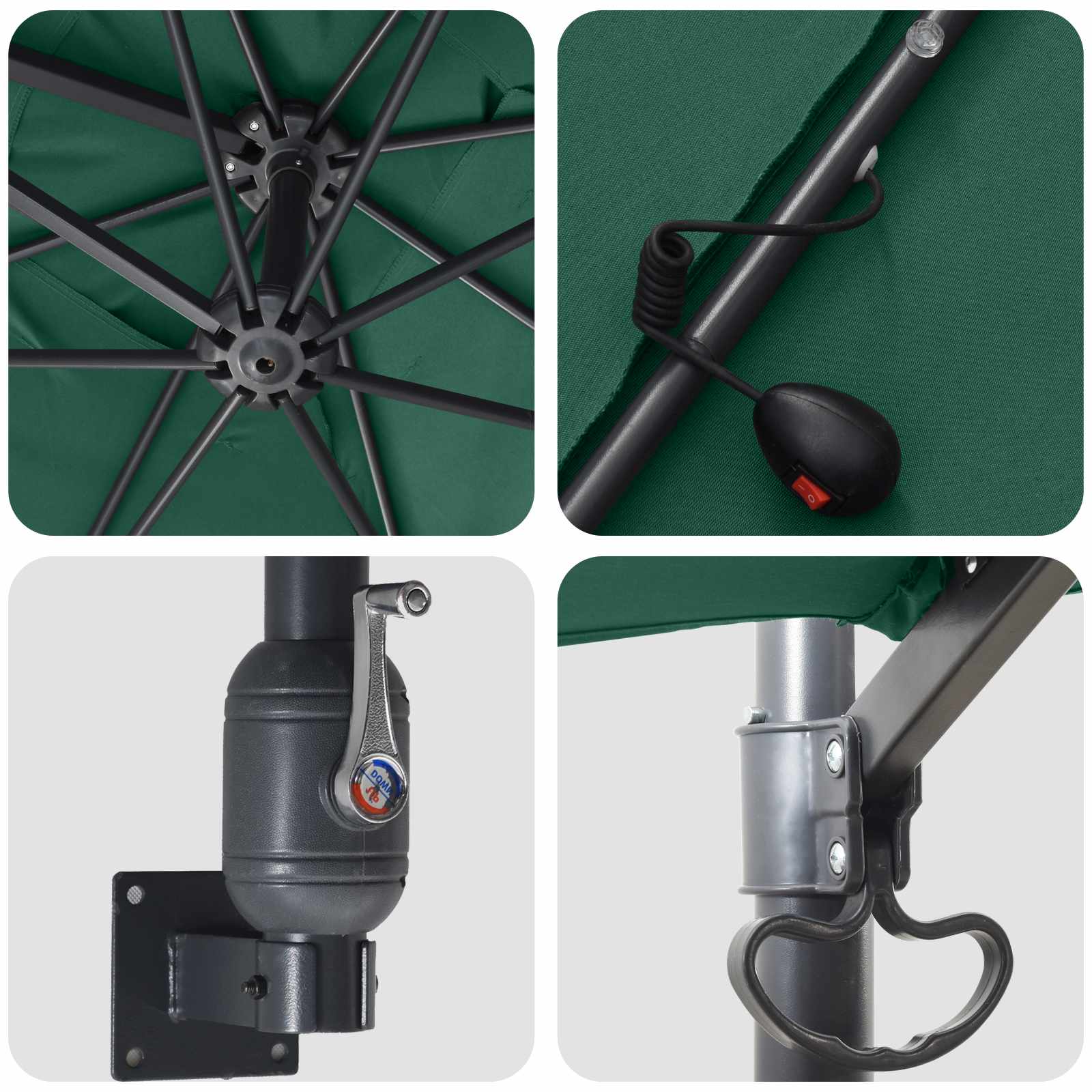 Parasol de jardin déporté inclinable moderne extérieur 248,5 x 247,5 x 160 cm en polyester vert 02_0058651