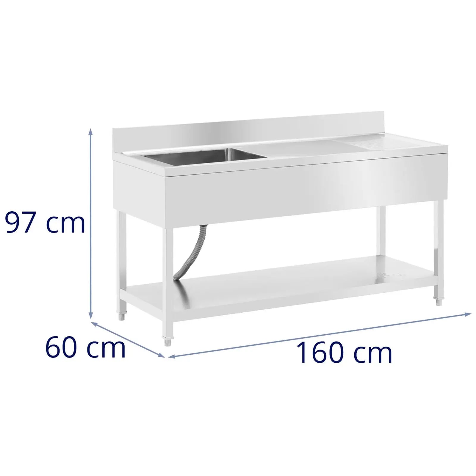 Plonge inox professionnel 1 évier 160 x 60 x 97 cm acier inoxydable argenté 14_0009562