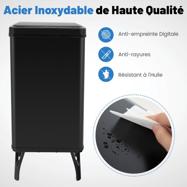 Poubelle en acier inoxydable 50 litres poubelle automatique à capteur de mouvement avec couvercle maintenu ouvert et fermeture douce noir 20_0009125
