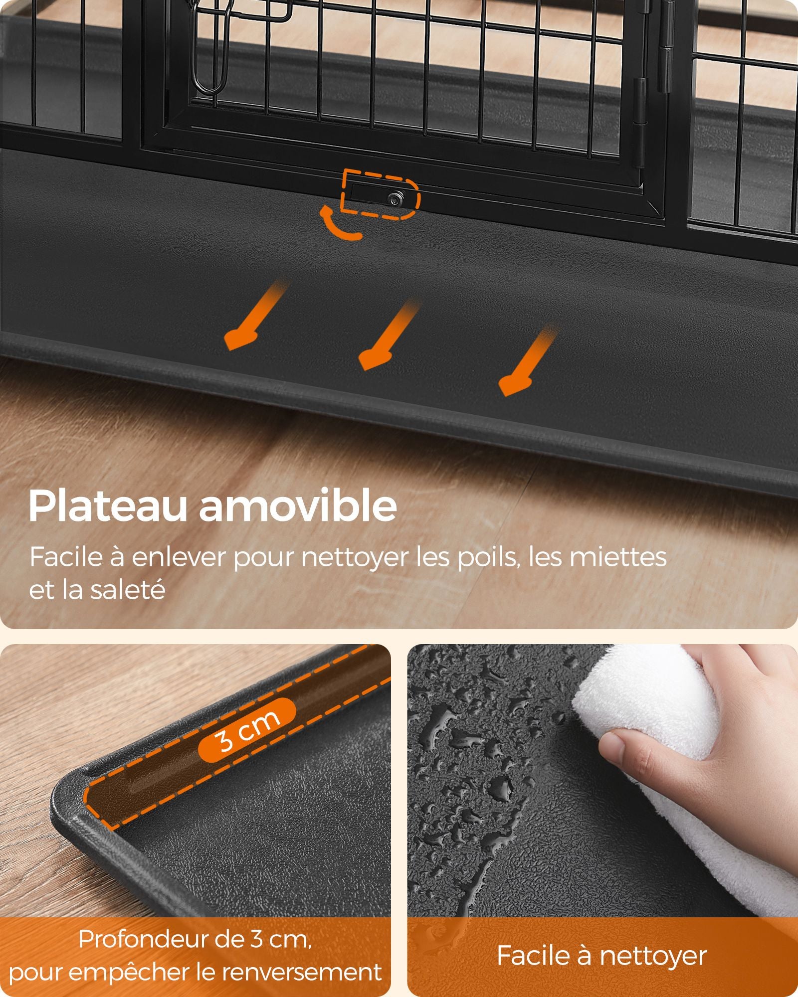 Cet enclos est équipé d’un plateau amovible facile à nettoyer. Il offre à votre compagnon un espace privé et propre.