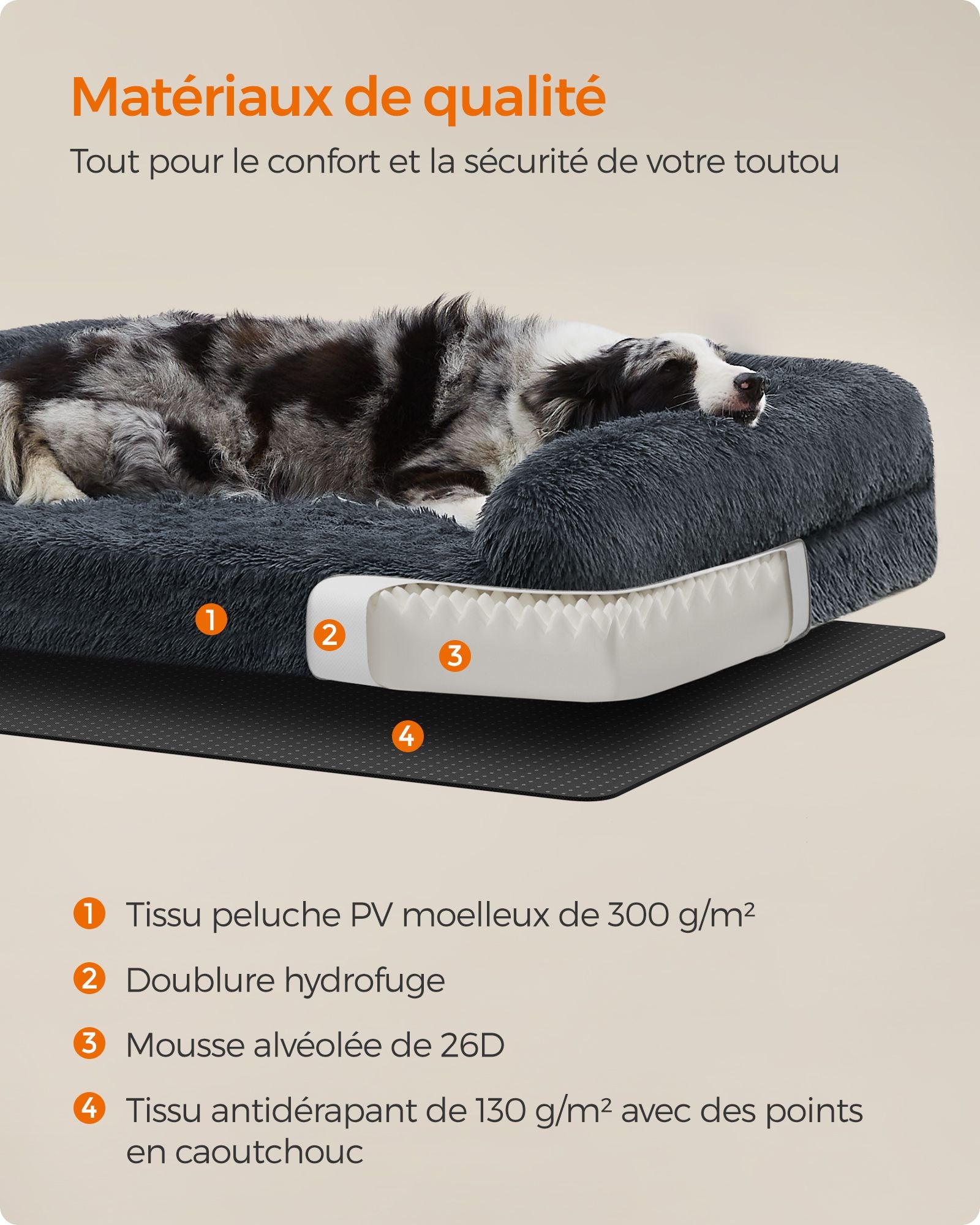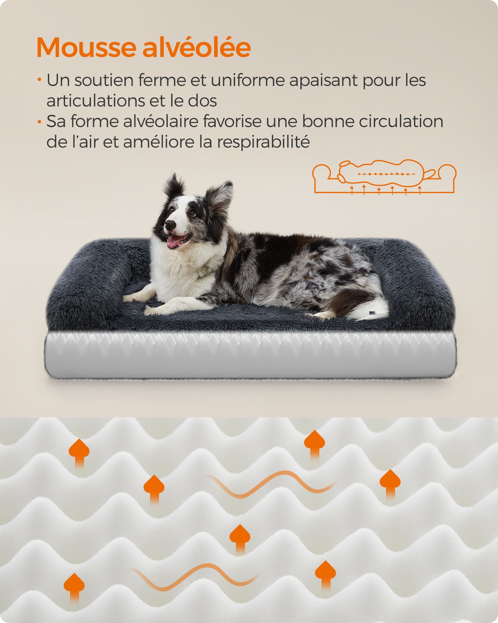 Panier pour chien canapé pour chiot taille XXL pour chiens de grande taille en mousse alvéolée avec housse amovible lavable gris 12_0005940