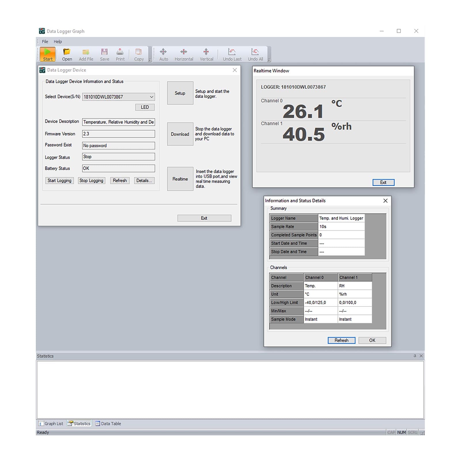 Avec l’enregistreur de données, vous pouvez collecter différentes données concernant l’humidité et la température de l’air à des intervalles temporels de votre choix.