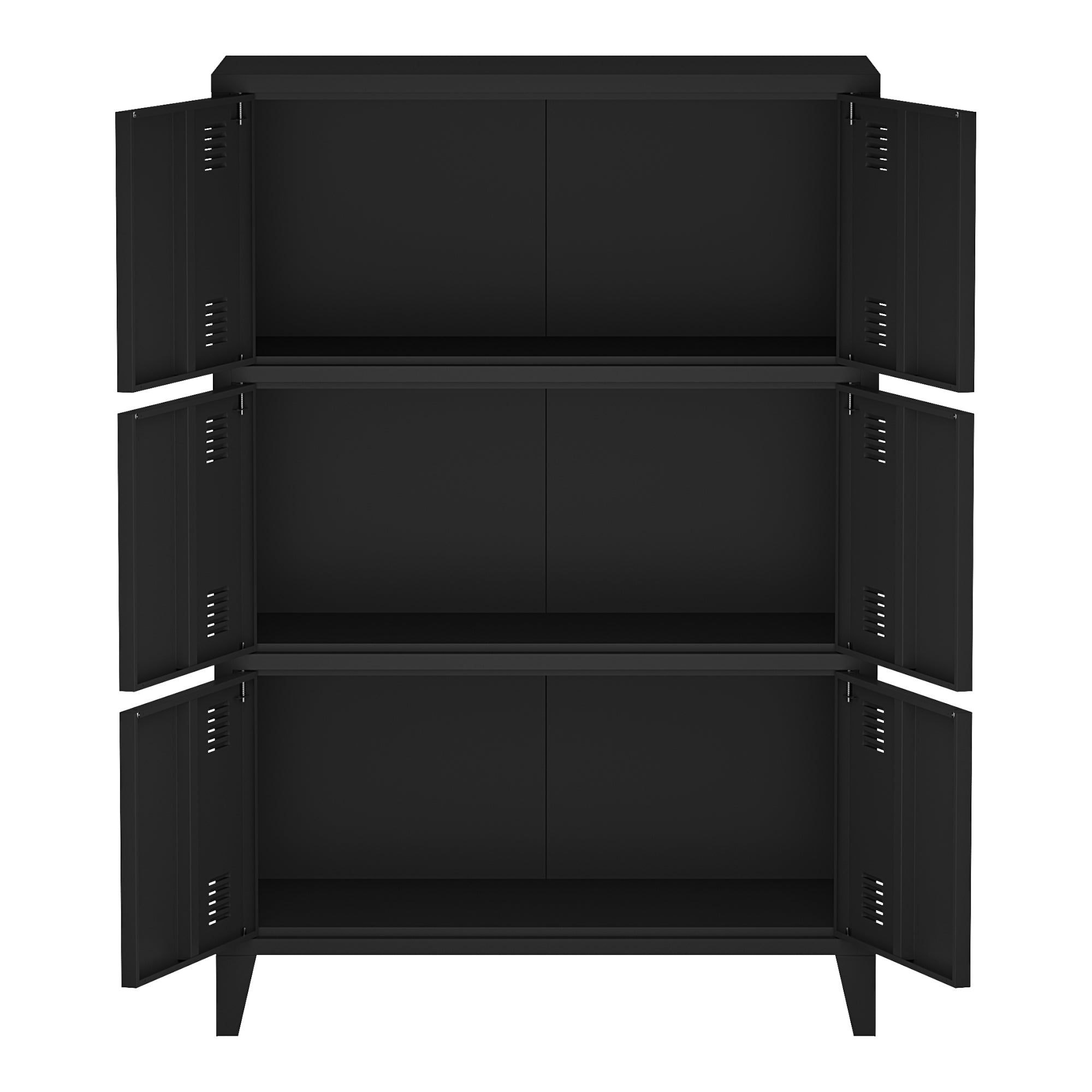 Découvrez notre meuble de rangement au style industriel, une solution pratique et polyvalente pour divers espaces. Que ce soit comme armoire dans le salon, casier dans le bureau ou rangement d'outils dans l'atelier, ce meuble ajoutera une touche de design à votre intérieur. Doté de 6 portes avec fentes d'aération et 3 étagères spacieuses, il offre amplement d'espace pour ranger vos fournitures de bureau, outils de bricolage ou ustensiles de ménage.
