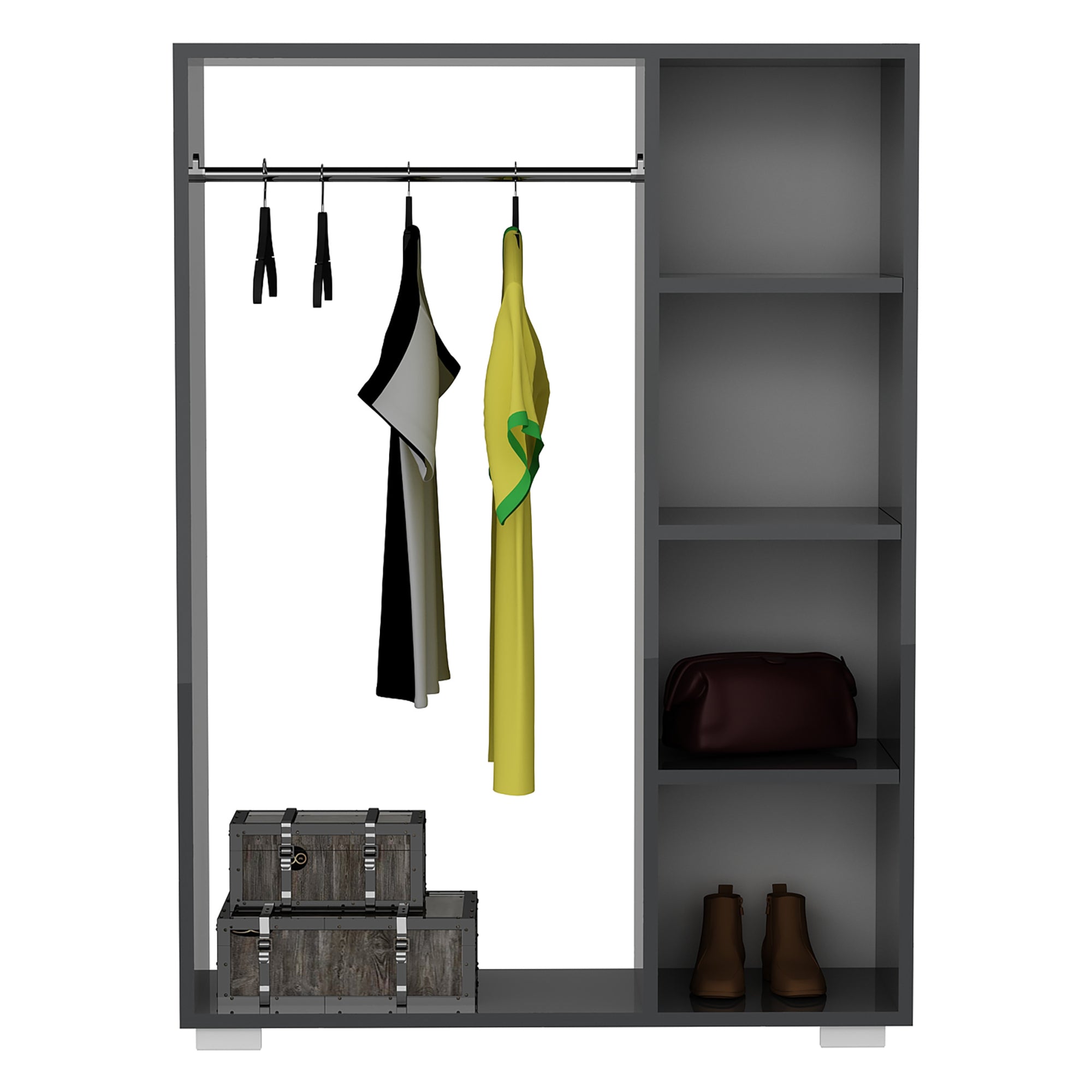 Ce portant à vêtements solide peut être monté facilement et rapidement. Maintes surfaces de stockage et une barre de penderie vous offrent de la place pour un rangement optimal de vos chaussures, vêtements et accessoires.