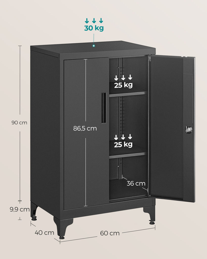 Caisson de bureau placard polyvalent armoire de bureau à 2 portes verrouillable 40 x 60 x 90 cm meuble de rangement en acier pour bureau salon noir 12_0004831