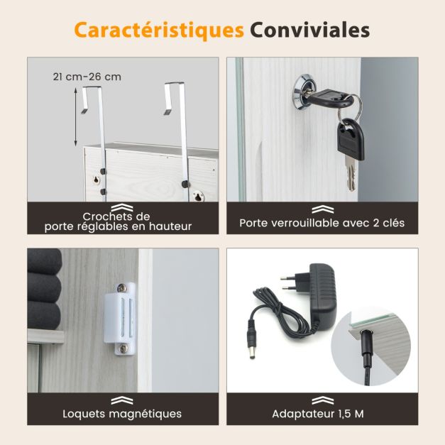 L'armoire est dotée d'une serrure (2 clés incluses) pour un rangement sécurisé et discret.