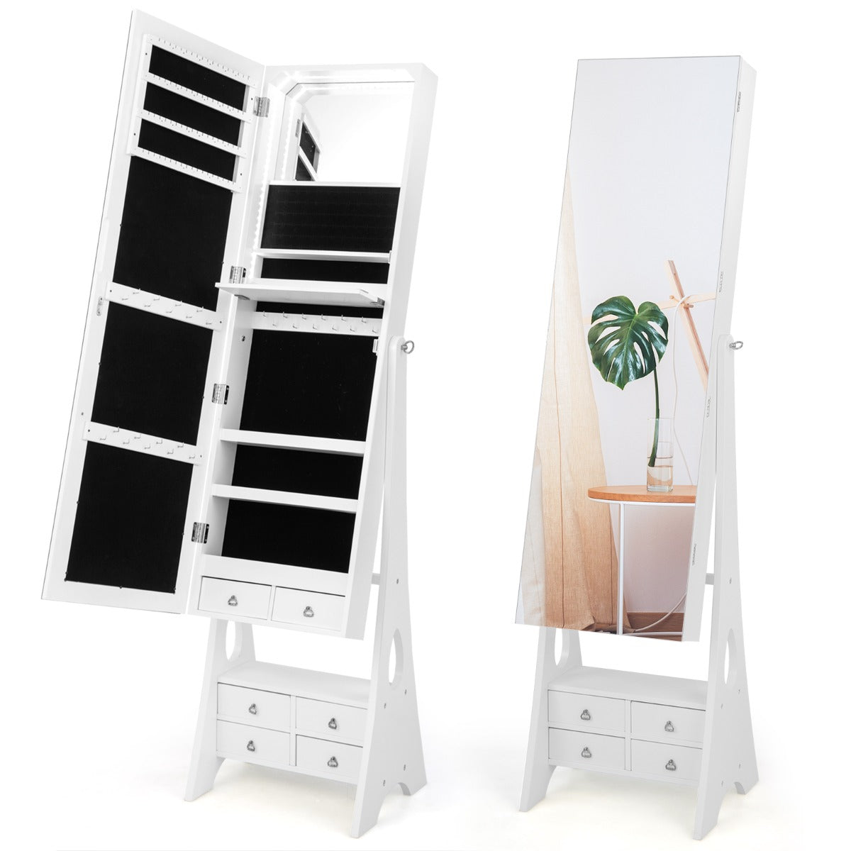 Profitez d'un rangement optimal pour vos bijoux et cosmétiques grâce à son design ingénieux, comprenant un miroir pleine longueur et un miroir intérieur.