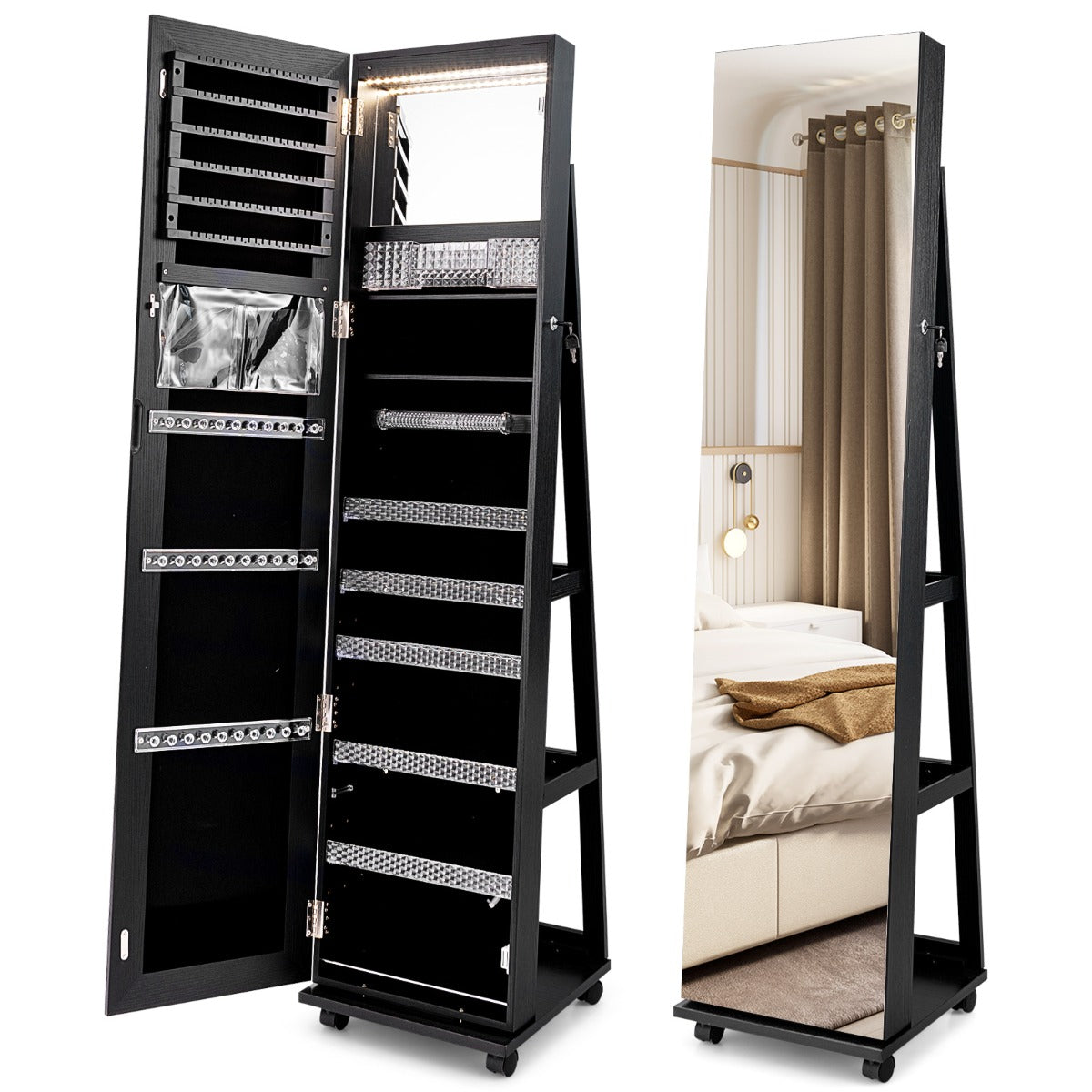 La porte verrouillable protège efficacement votre précieuse collection de bijoux, tandis que la doublure en velours doux évite les rayures.