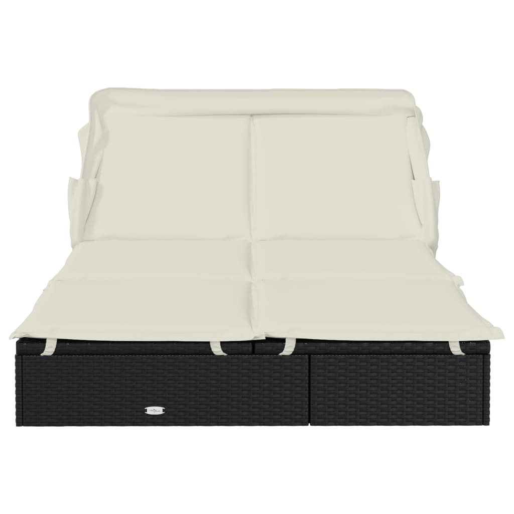 Transat chaise longue 2 places avec toit pliable 213 x 118 x 97 cm noir 02_0012190