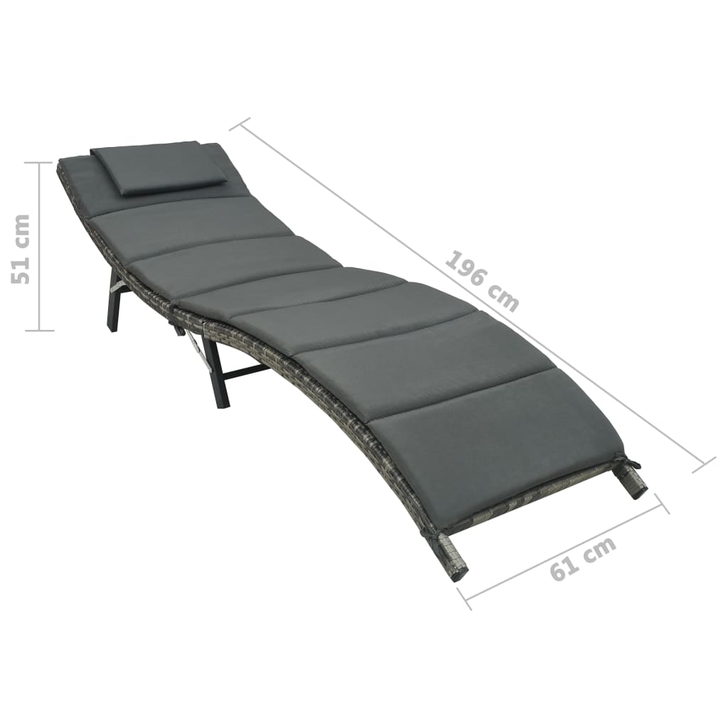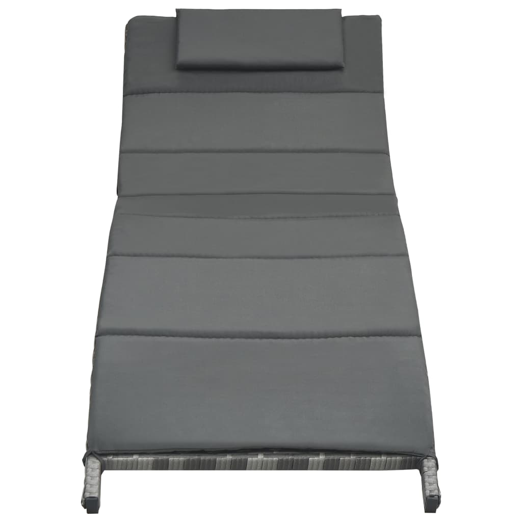 Transat chaise longue bain de soleil lit de jardin terrasse meuble d'extérieur pliable avec coussin résine tressée gris 02_0012855