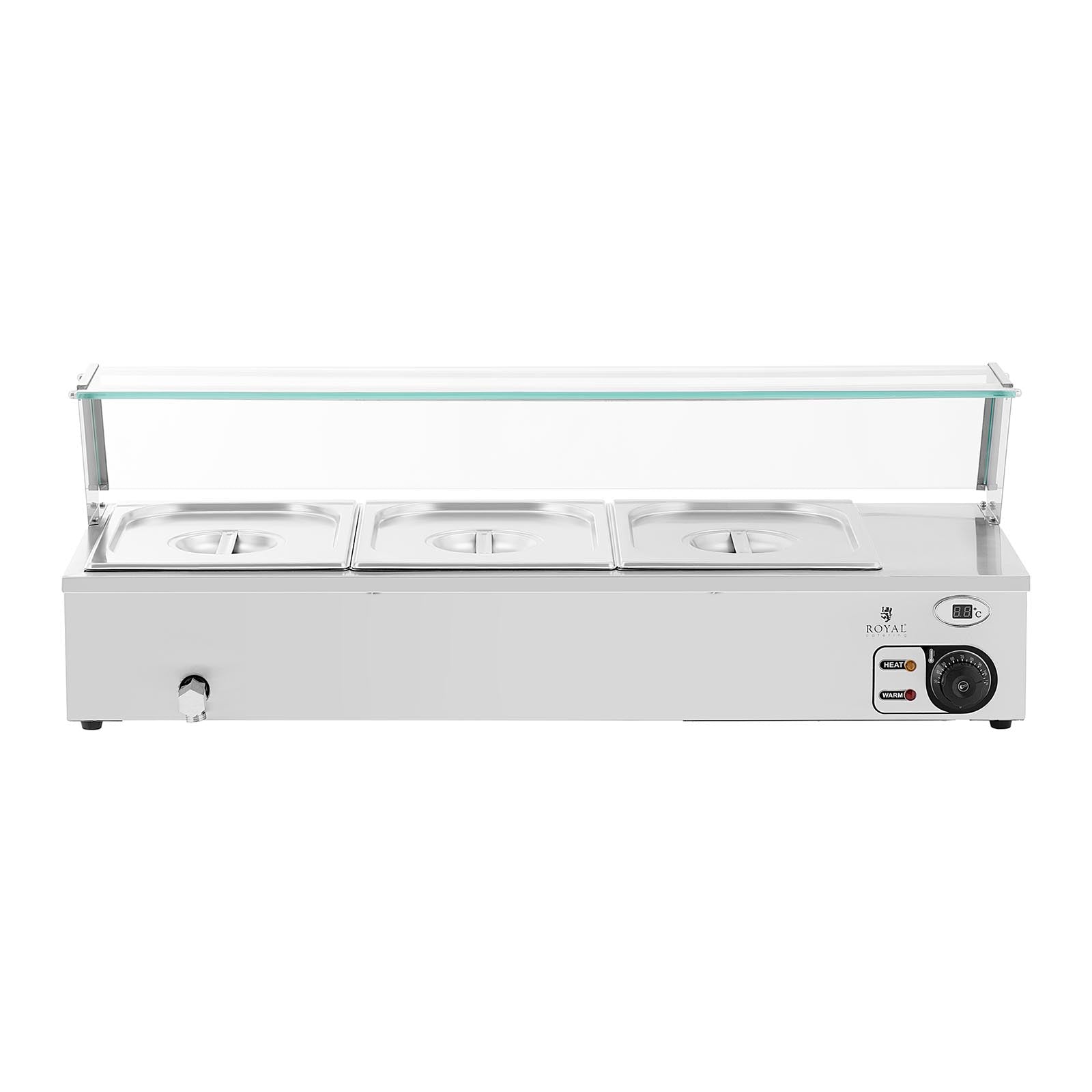 Bain-marie - 2,000 watts - 3 x GN 1/2 - robinet de vidange - couvercle en verre 14_0004222