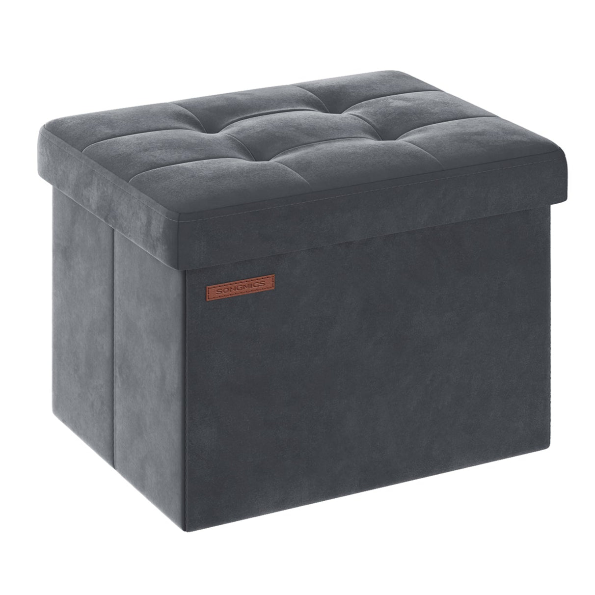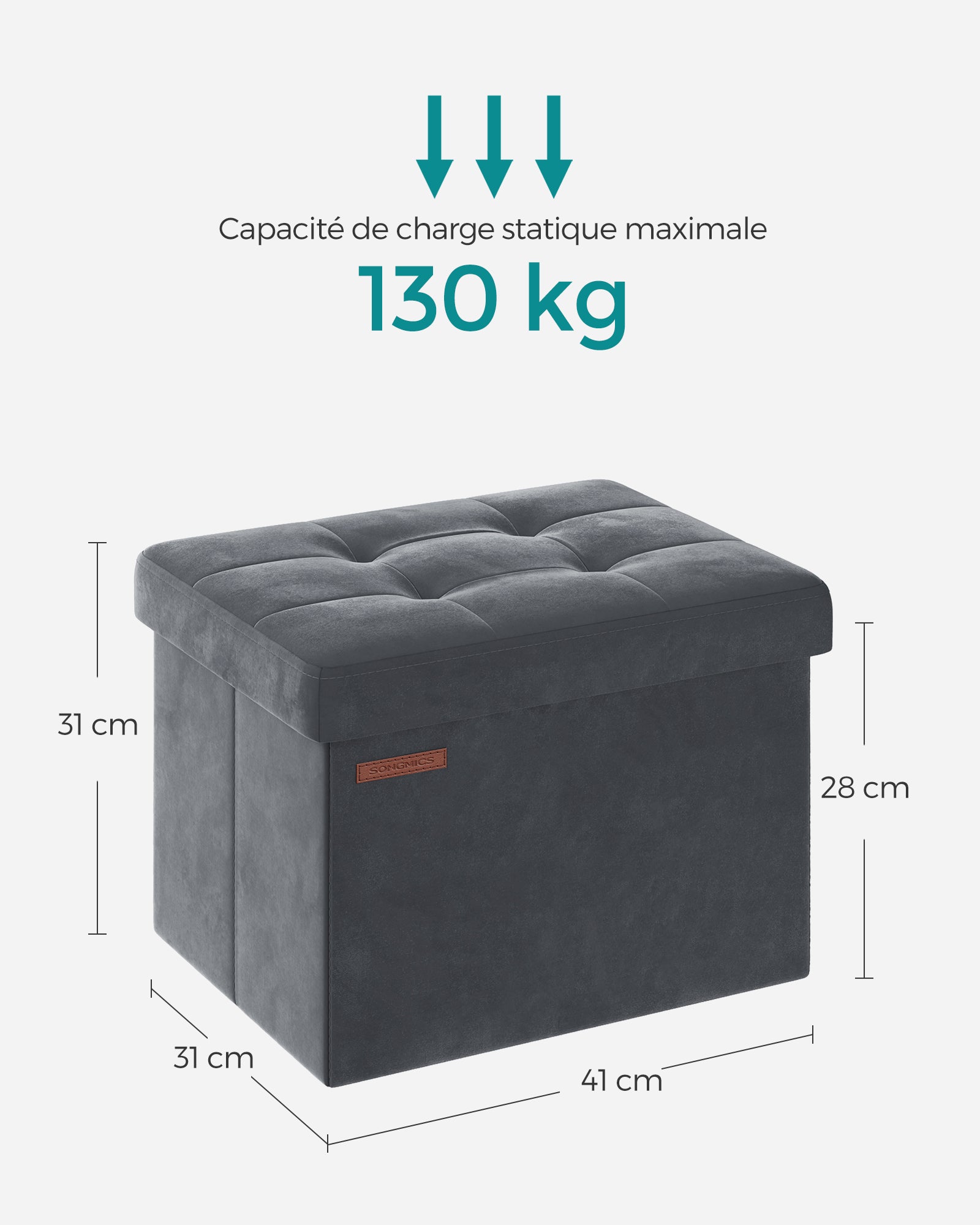 Banc de rangement boîte pliable en velours repose-pieds avec couvercle 31 x 41 x 31 cm capacité de charge 130 kg pour couloir salon gris 12_0004136