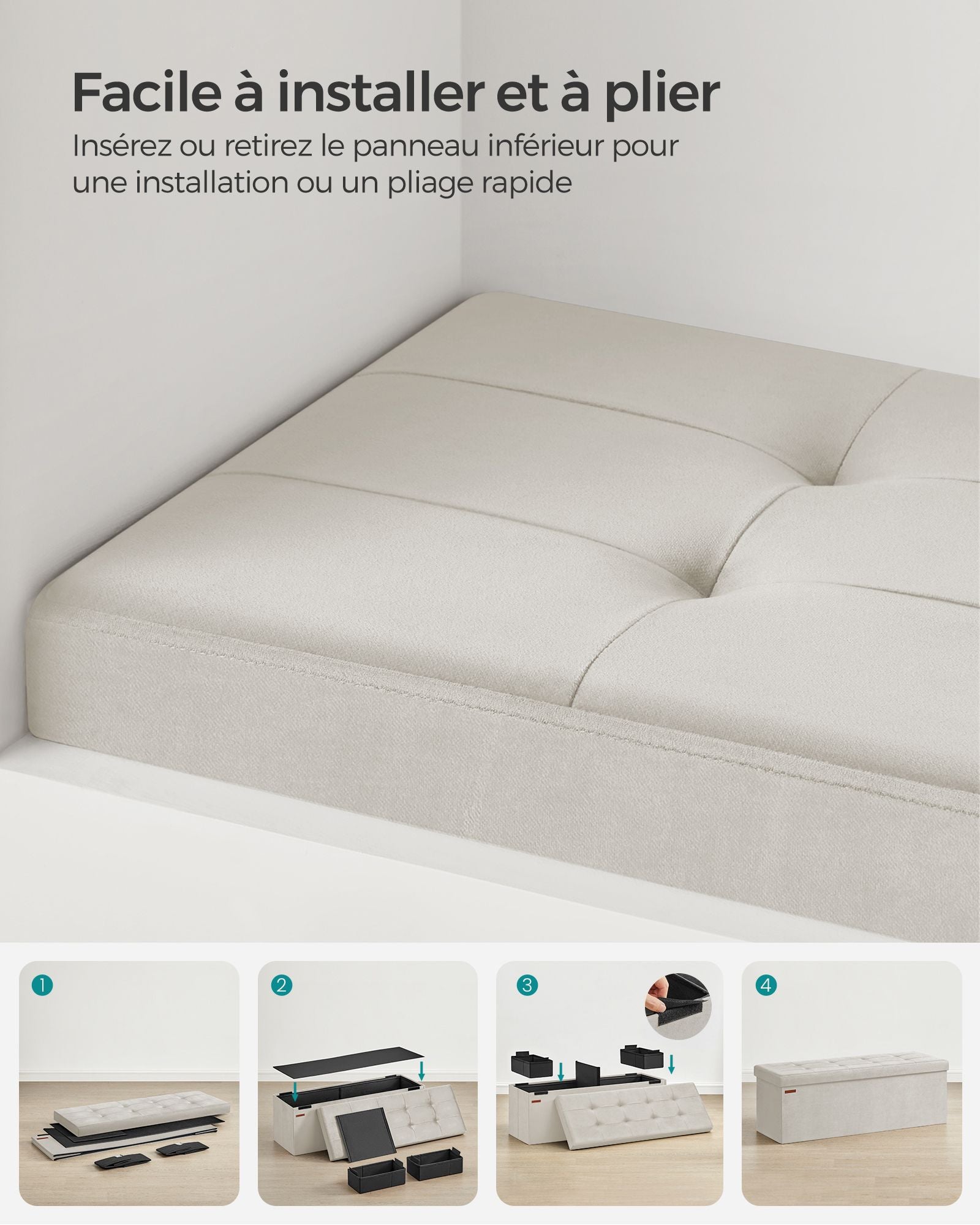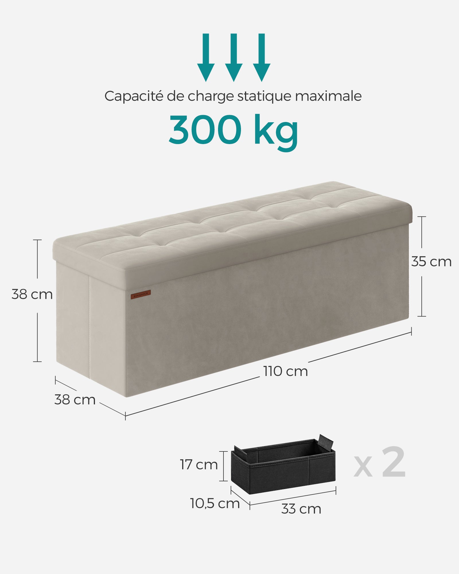 Banc de rangement pouf en velours avec couvercle avec 2 boîtes séparateur amovible capacité de charge 300 kg pour couloir salon chambre beige 12_0004162