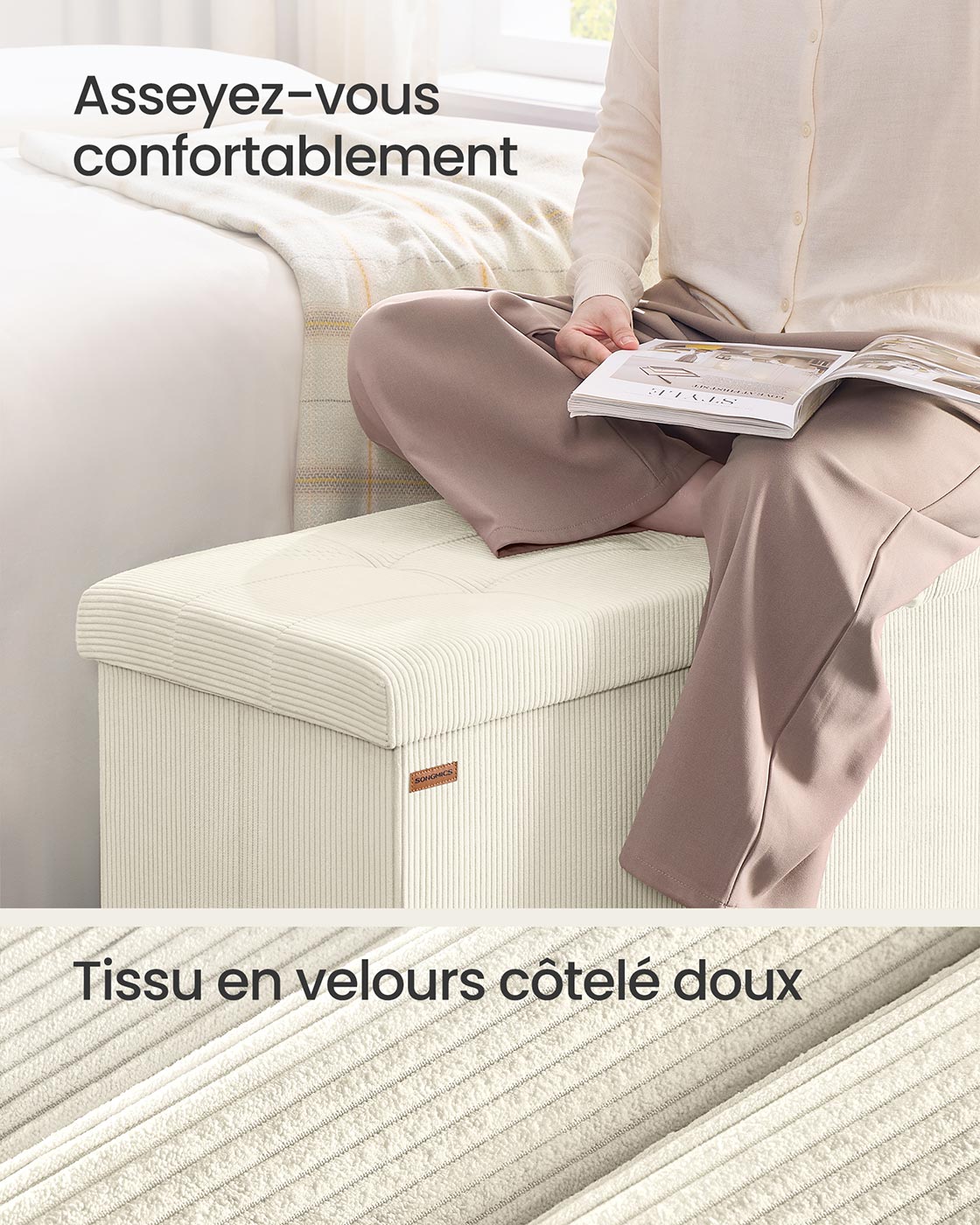 Matériaux : Panneau MDF, velours côtelé, mousse haute résilience 25D