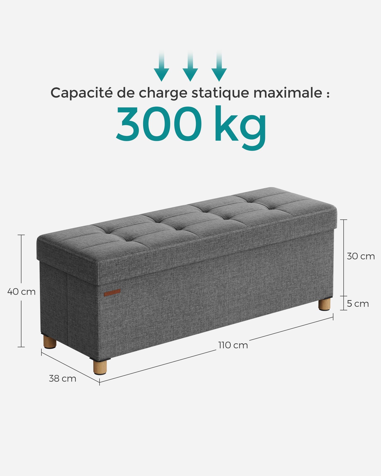 Capacité de charge statique maximale : 300 kg
