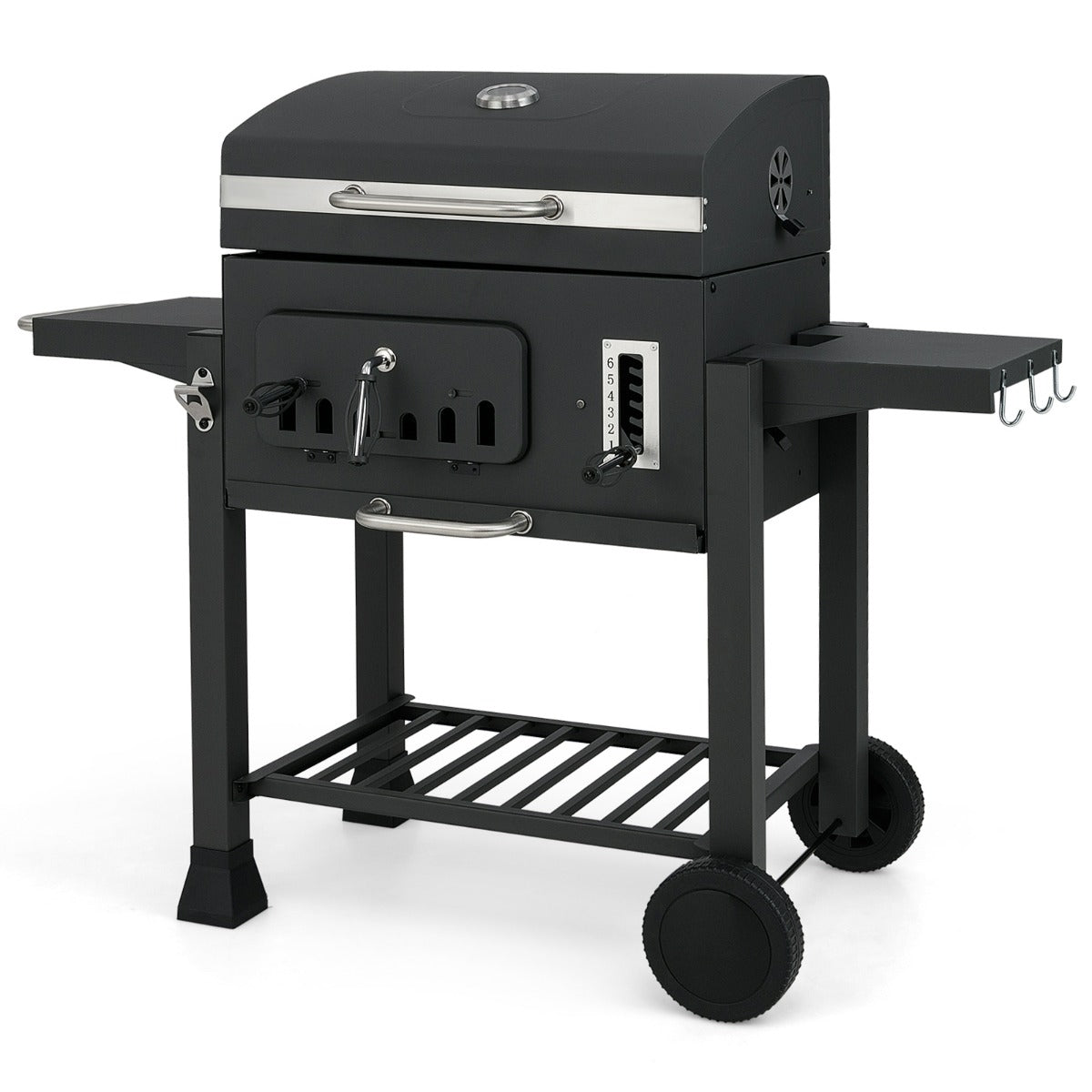 Barbecue à charbon 132 x 57 x 106 cm avec 2 tables pliantes ajustables 6 positions noir en acier laminé à froid 20_0010596