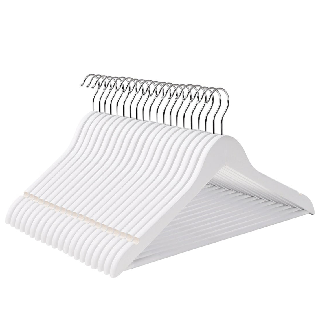 Cintres lot de 50 en érable avec rainures et barre de pantalon rotation à 360 degrés blanc 12_0003786