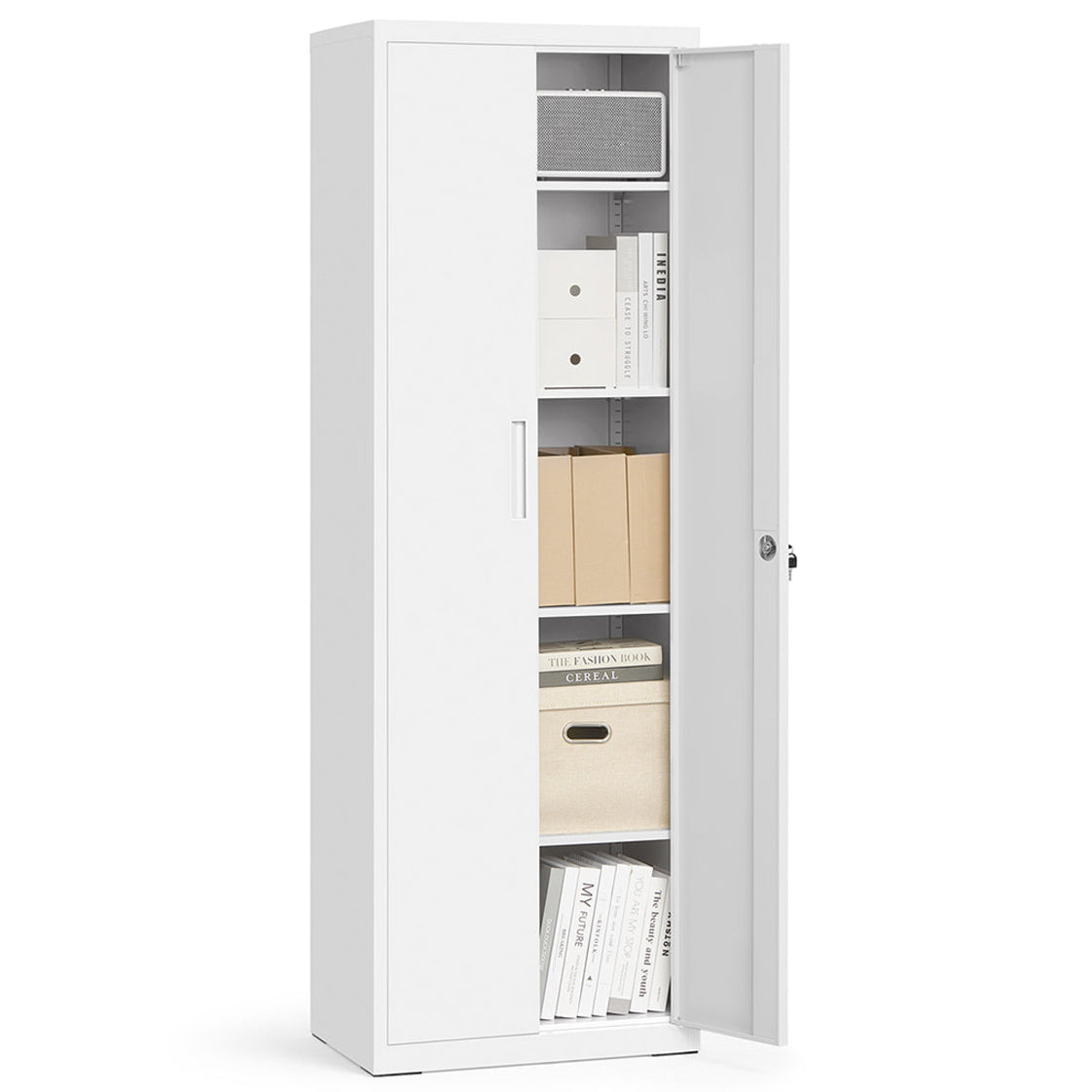 Armoire de rangement en acier placard de bureau à 5 niveaux 40 x 60 x 180 cm double porte meuble de rangement pour garage bureau robuste blanc 12_0003986