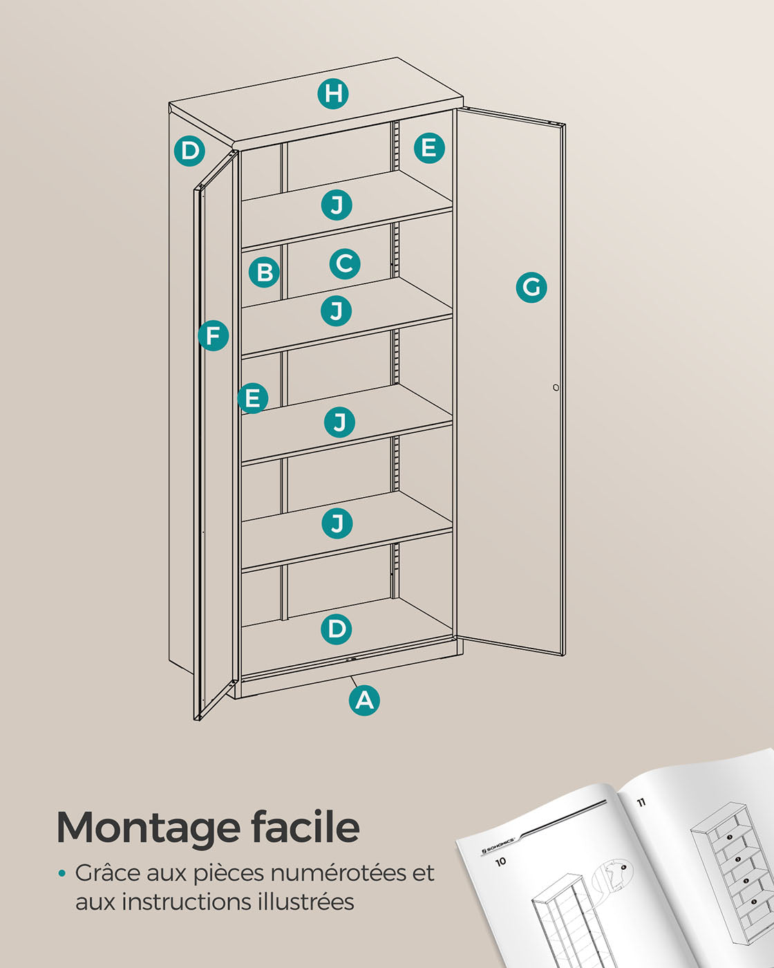 Ce placard métallique multi-usages peut être utilisé aussi bien dans un bureau pour ranger des documents et des classeurs que dans un garage pour stocker des outils ou des livres. Il vous aide à garder vos espaces organisés et à dissimuler le désordre.