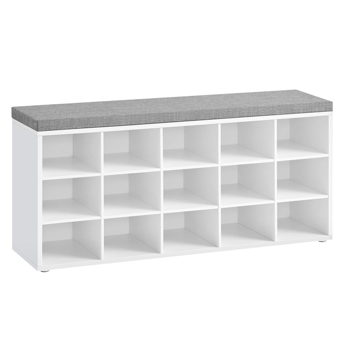 Banc chaussures meuble entrée banc rangement avec 15 compartiments siège rembourré capacité de charge 200 kg blanc et gris 12_0004115