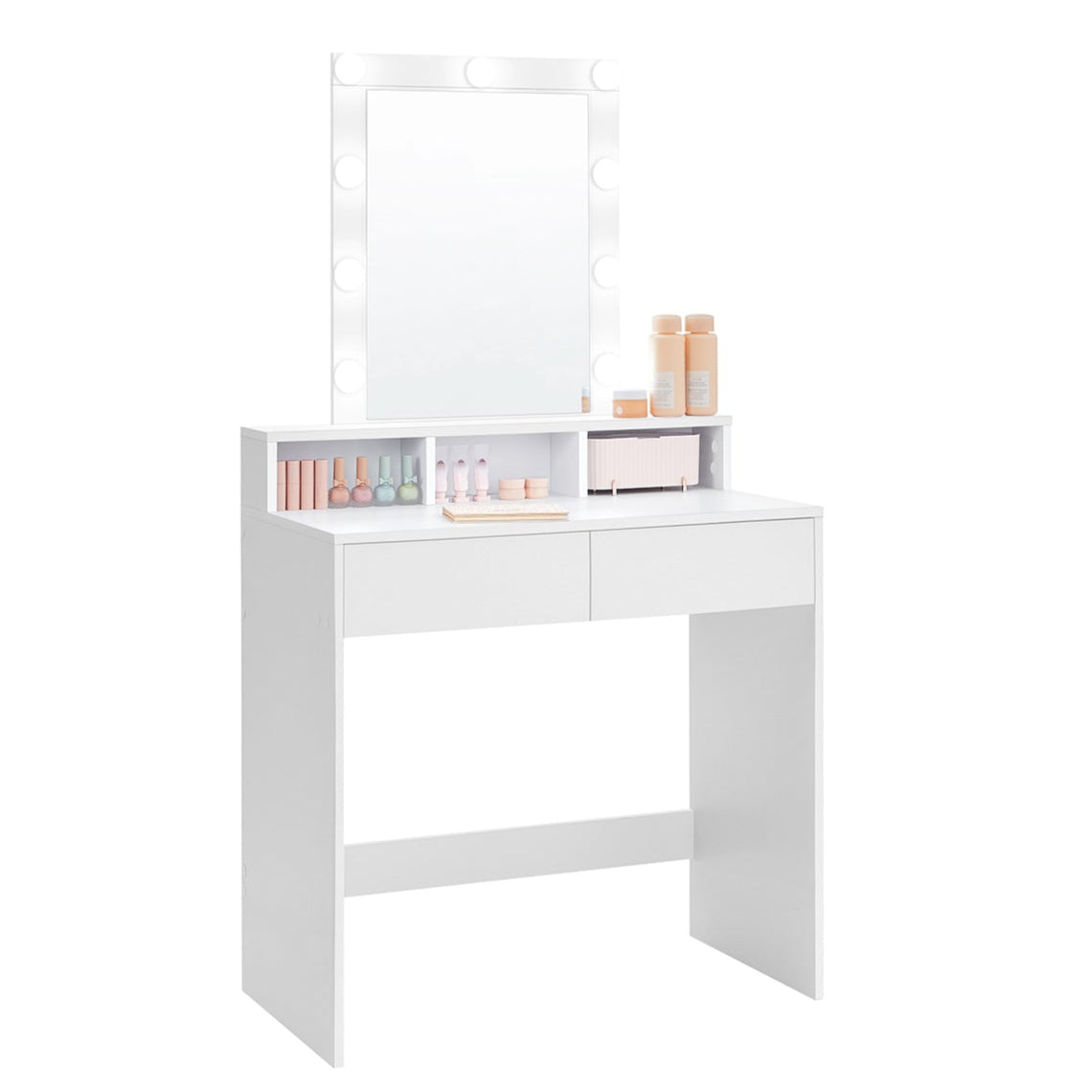 Coiffeuse avec miroir et ampoules table de maquillage avec 2 tiroirs et 3 compartiments de rangement style moderne blanc 12_0005155