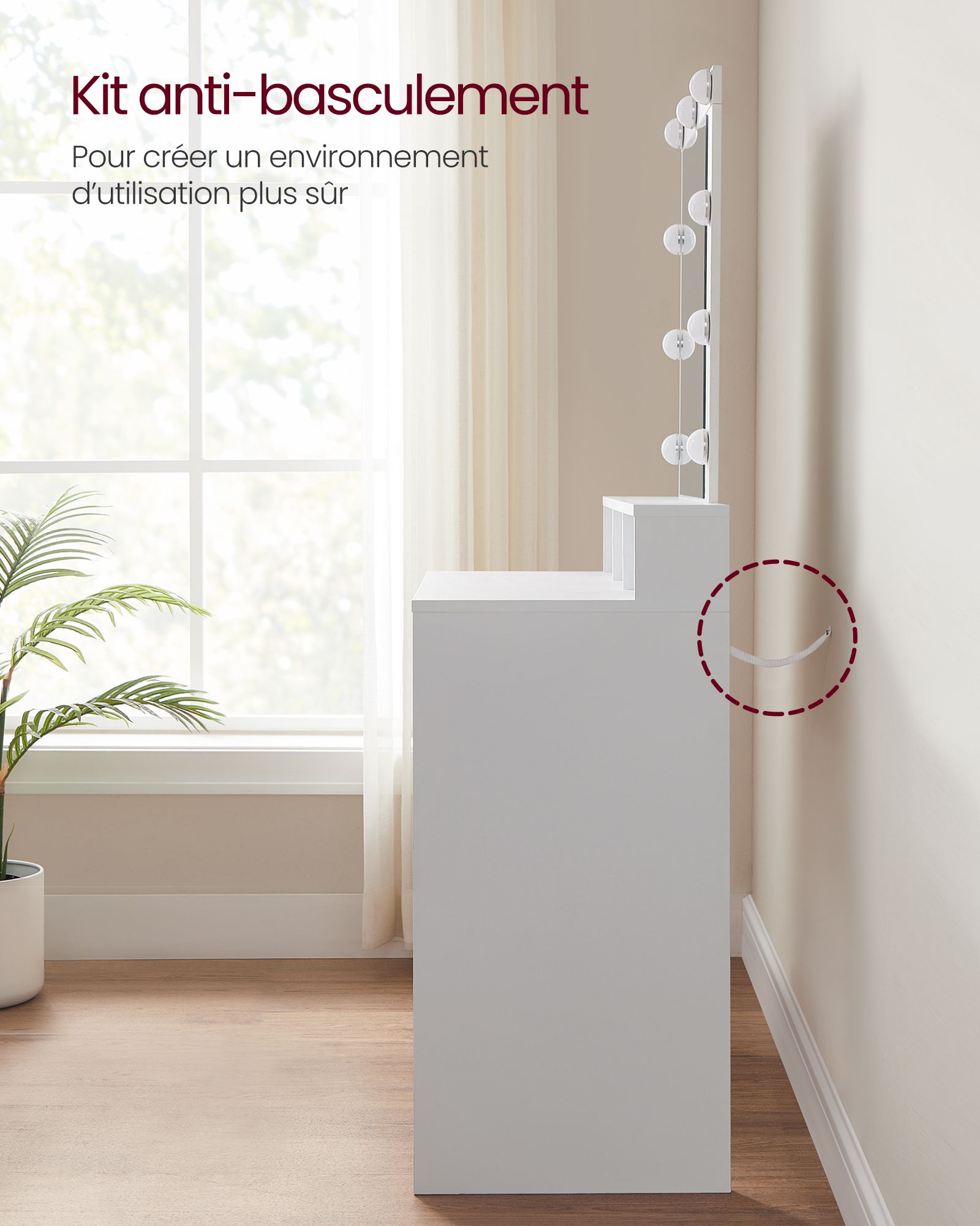 Pour plus de sécurité, fixez impérativement le produit au mur avec le dispositif anti-basculement fourni.
