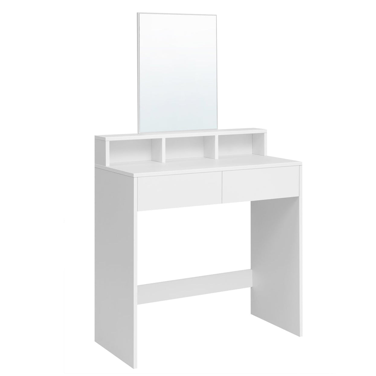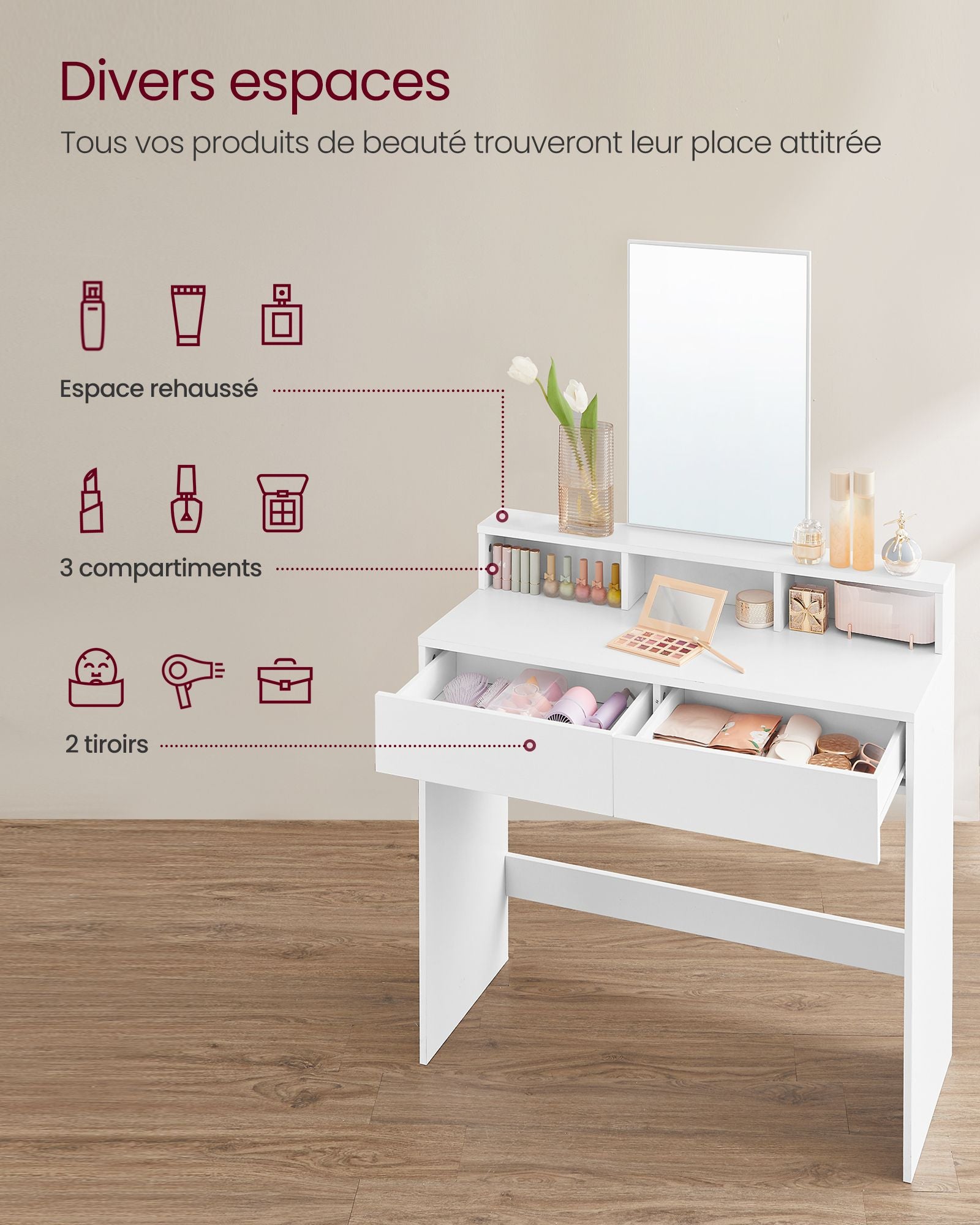 Coiffeuse avec miroir rectangulaire table de maquillage avec 2 tiroirs et 3 compartiments de rangement style moderne blanc 12_0005167