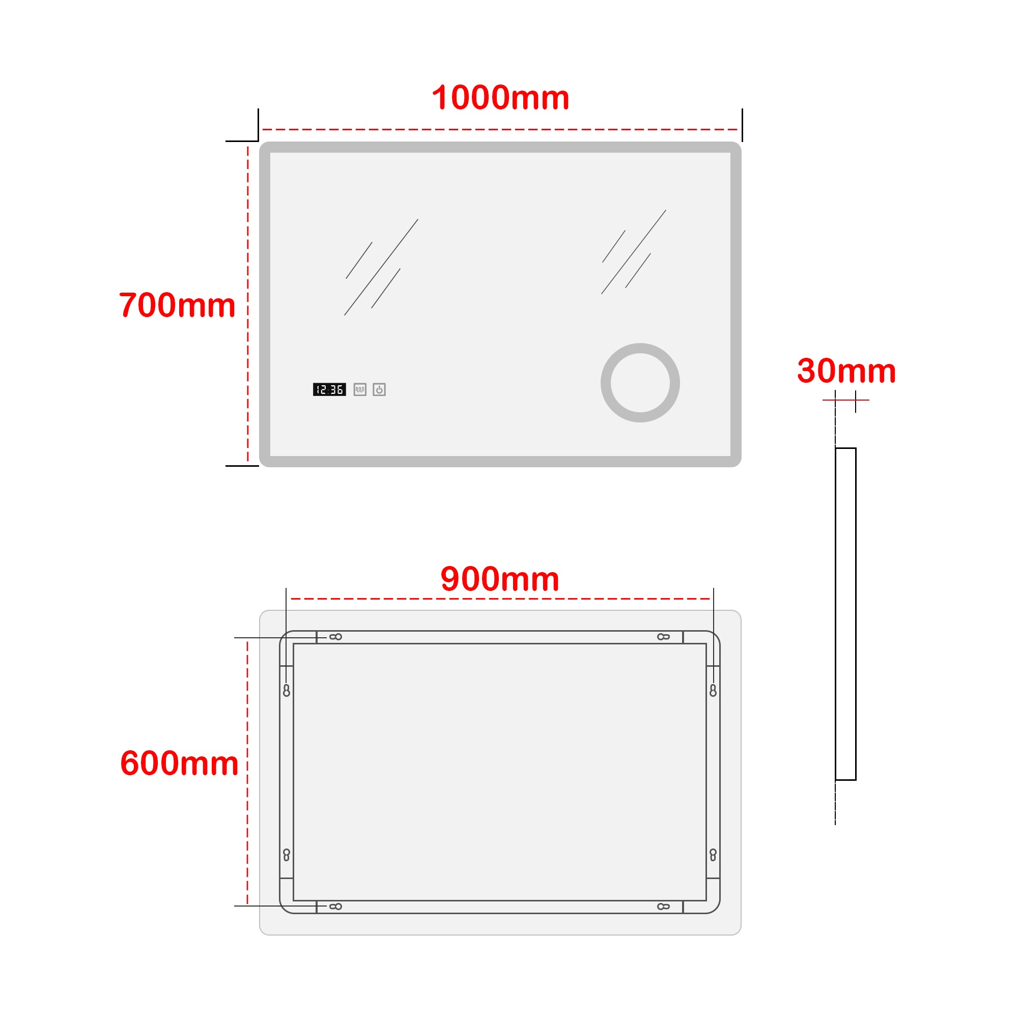 Notre miroir stylé crée une ambiance agréable dans votre salle de bain. Équipé de trois niveaux d'éclairage - blanc chaud (3000 K), blanc neutre (4500 K), blanc froid (6500 K) - il s'adapte parfaitement à vos besoins. Son fonctionnement est très simple, l'interrupteur tactile vous permet de l'allumer et l'éteindre en un rien de temps. Avec 120 perles LED par mètre, sa bande lumineuse (IP65) est de faible consommation d'énergie et possède une durée de vie jusqu'à 50 000 heures. Il est possible de régler le niveau d'éclairage entre 10 % et 100 %, vous pouvez également sauvegarder votre réglage personnel. Son montage est facile, il suffit de brancher le miroir sur une prise, cependant, nous vous recommandons de faire appel à un professionnel pour l'installation. De plus, notre miroir LED est doté d'une fonction anti-buée ainsi que d'un cercle lumineux avec une loupe grossissante 3 fois intégrée.